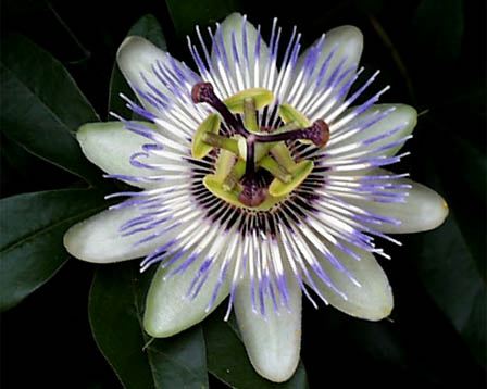 時計草の開花は今が盛り。名前のとおり、壁掛けの時計盤のような