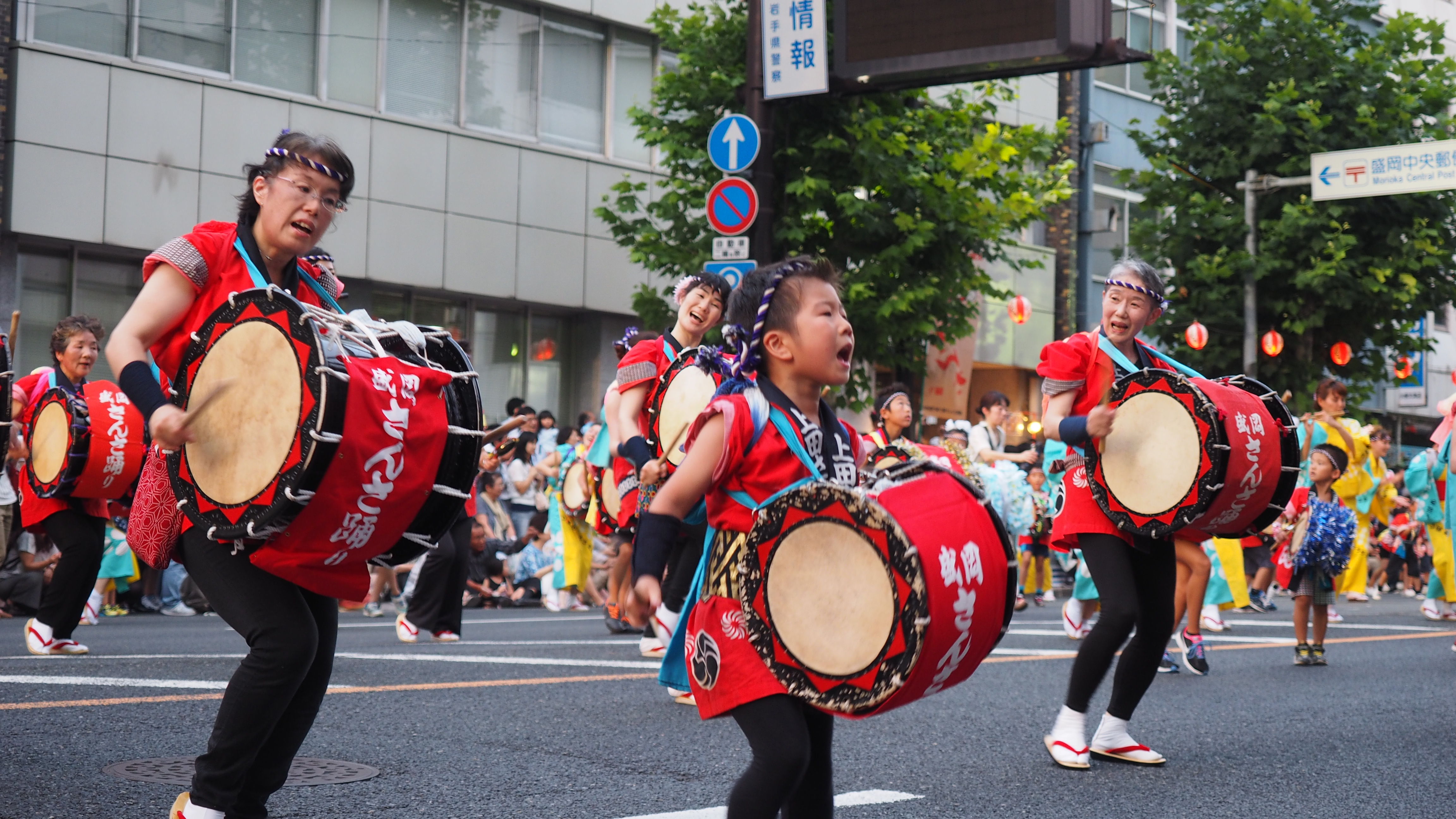 さんさ踊りは踊りだけではなく、太鼓や笛も加わり見事なパレードを見ることができます。