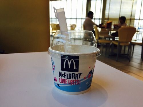そして、これもアメリカらしいマックのアイス。チョコレートがいっぱいまかれてます(笑)