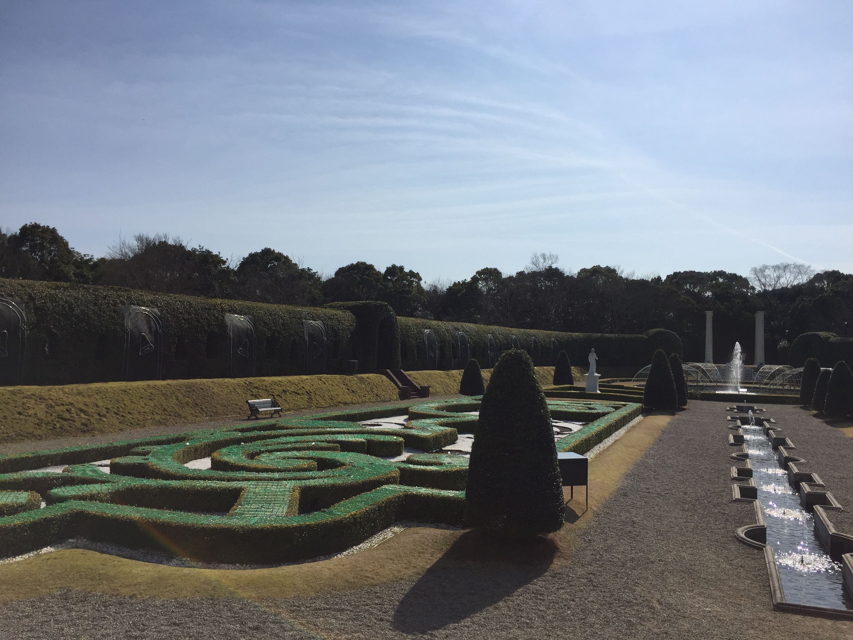庭園は、ヴェルサイユ宮殿庭園設計者の弟子が王宮のために設計するも実現しなかった幻の庭園図面を元に、フランスとオランダのバロック式の庭園を復元したそうです。