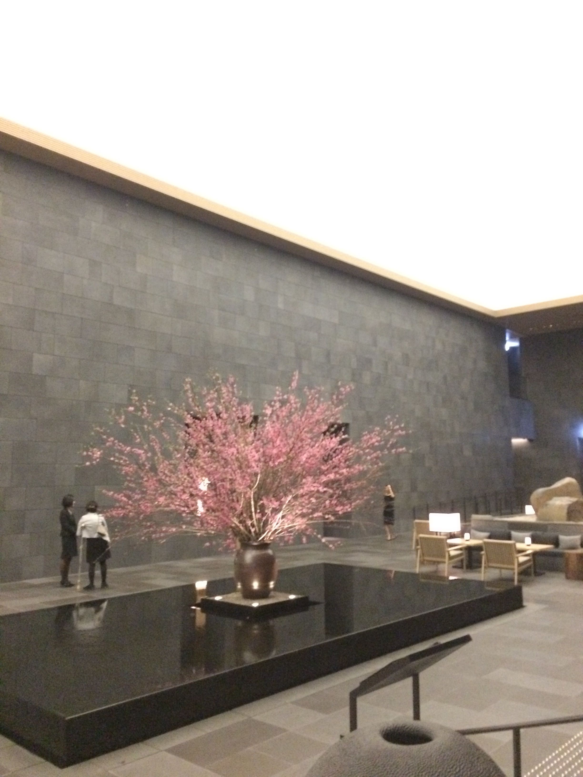 33階に着くとウォーターファウンテンに梅の花が迎えてくれました。