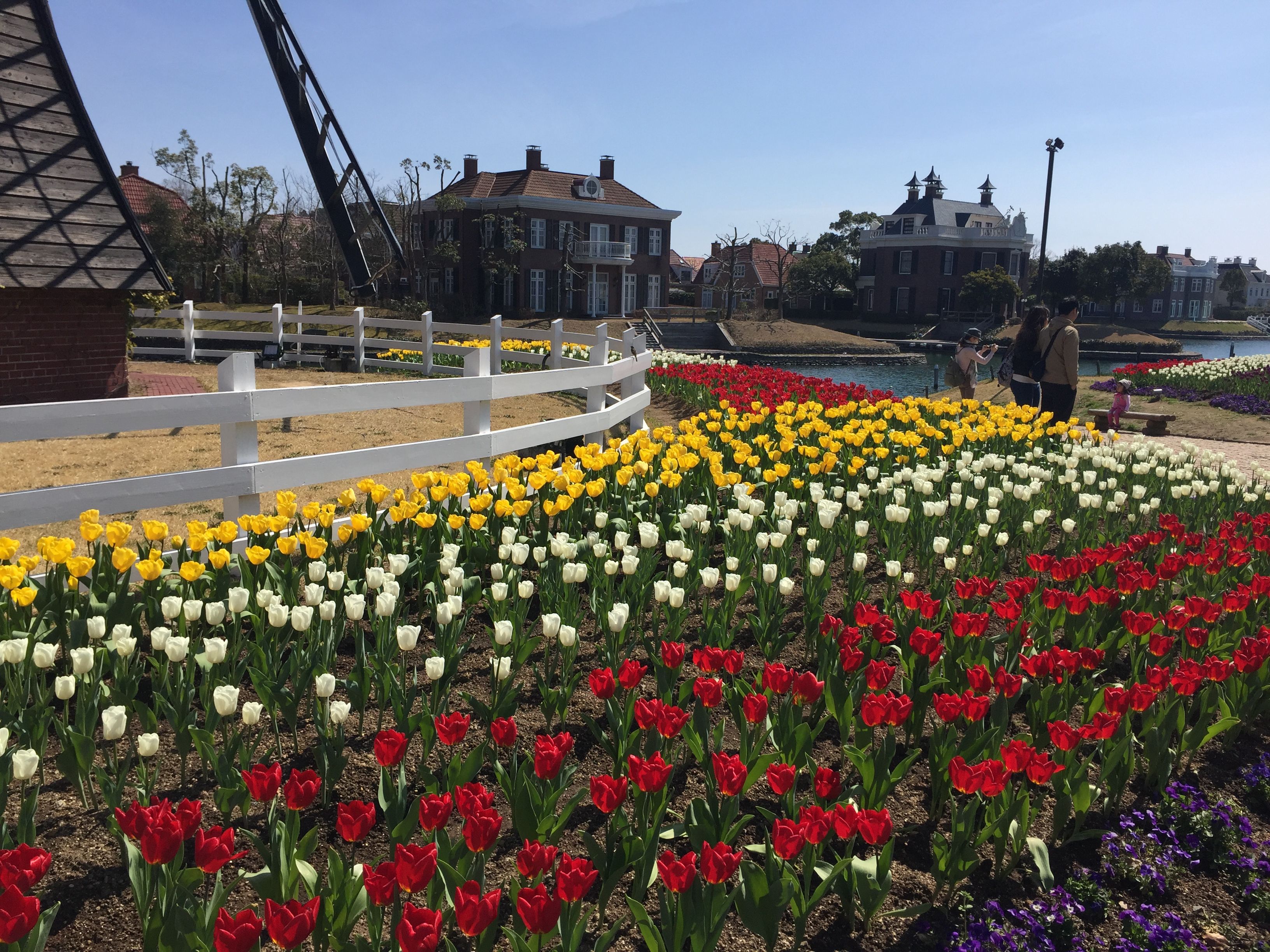 入国後はみごとに咲いたチューリップと風車が出迎えてくれます。