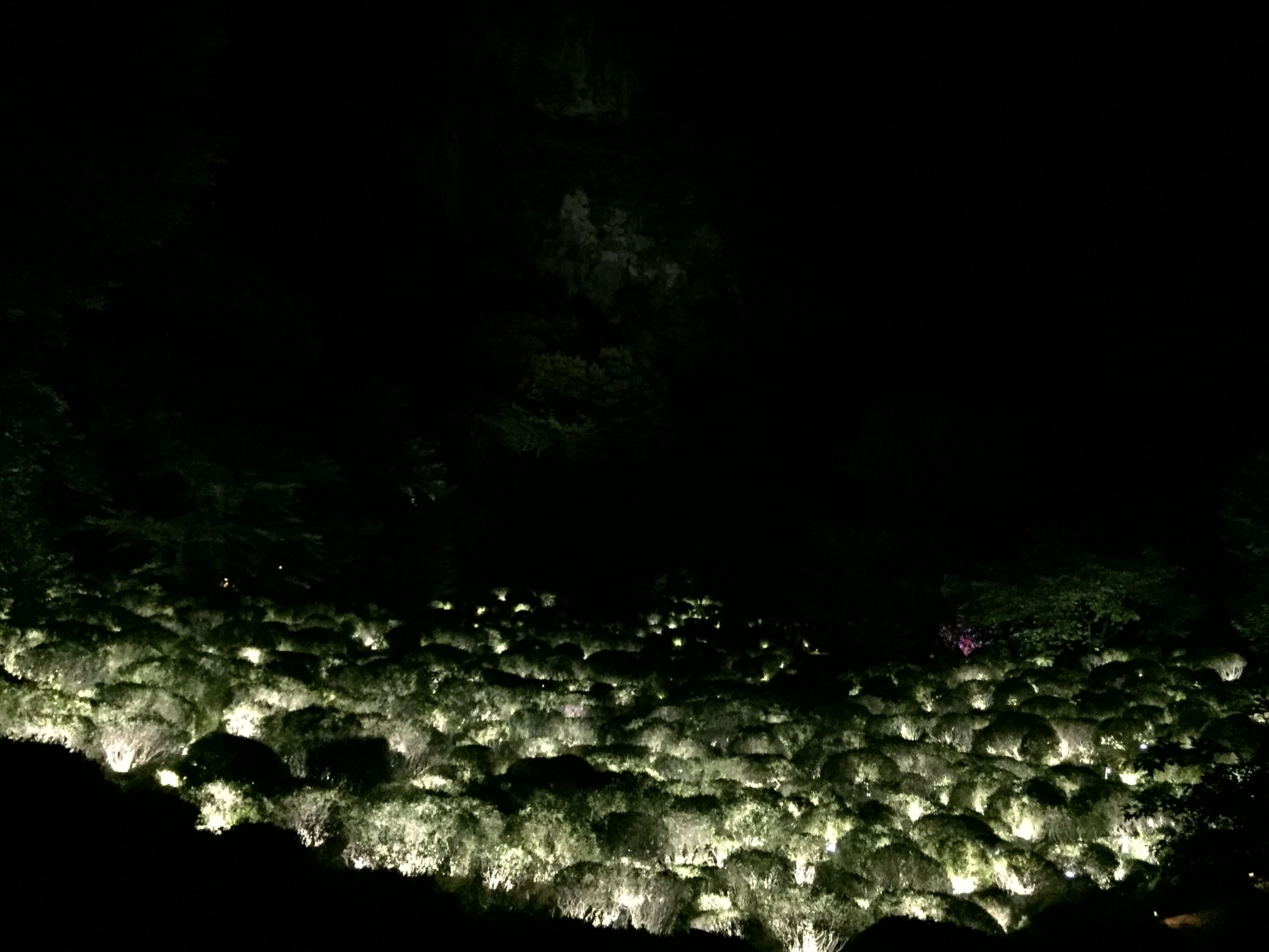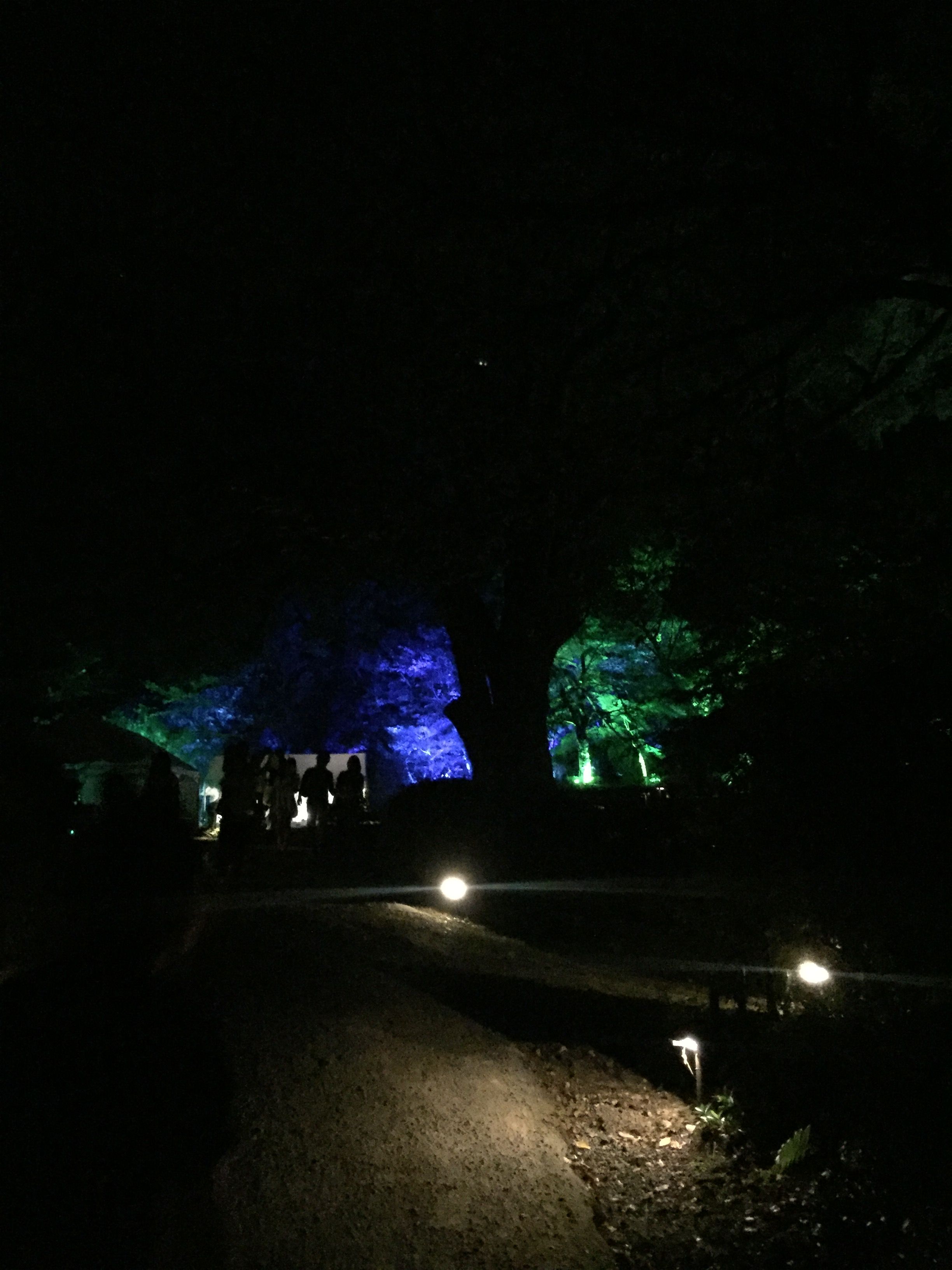 辺りが暗くなってから入場し御船山楽園の、森に囲まれた庭園のなかを散策します。