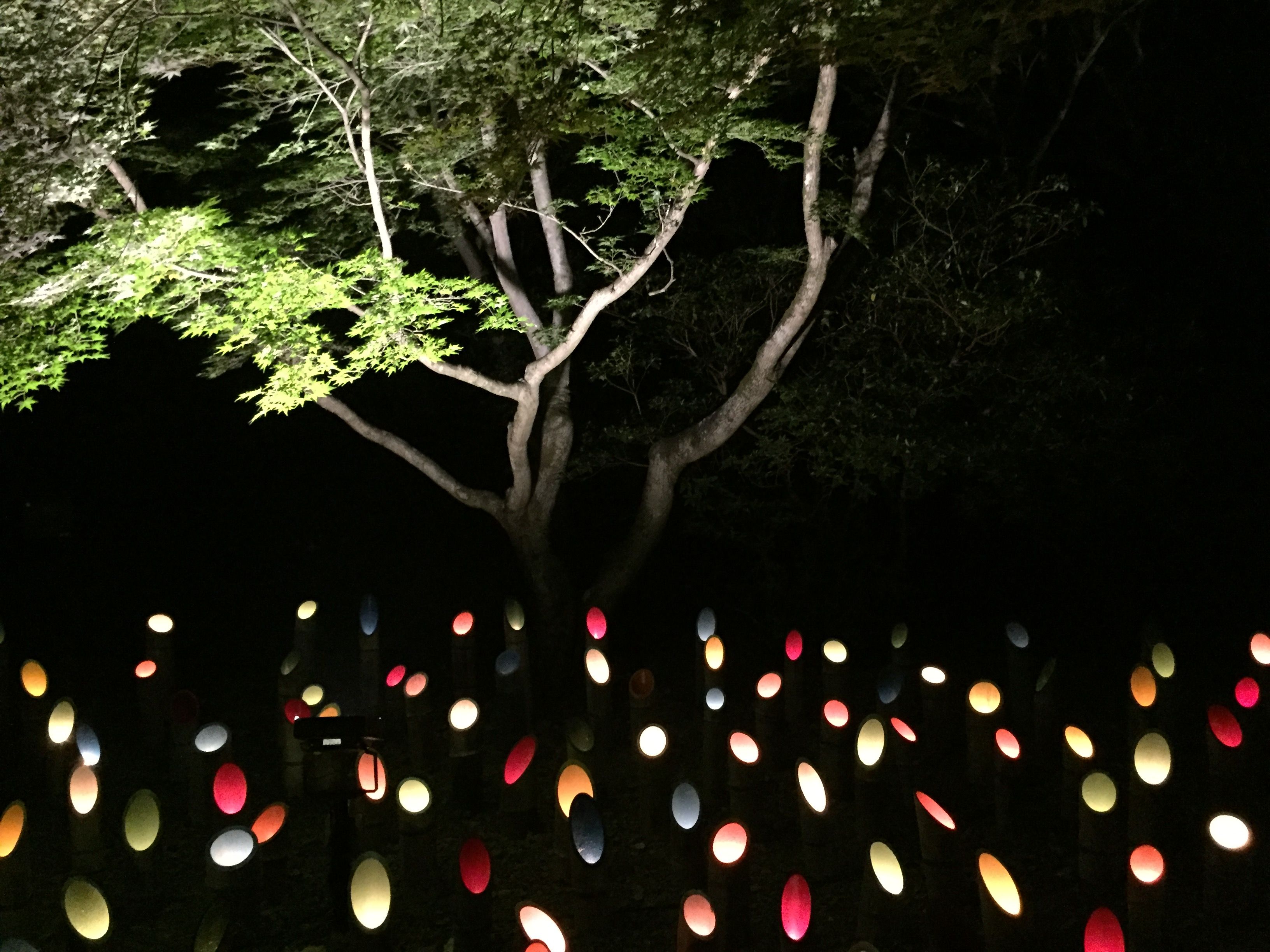 竹の中にキャンドルを入れた光のインスタレーションや、