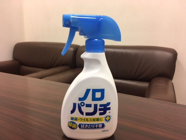 たまたま、アスクルで購入していたノロパンチという商品がありましたので、社内に噴射して早退させて頂きました。
