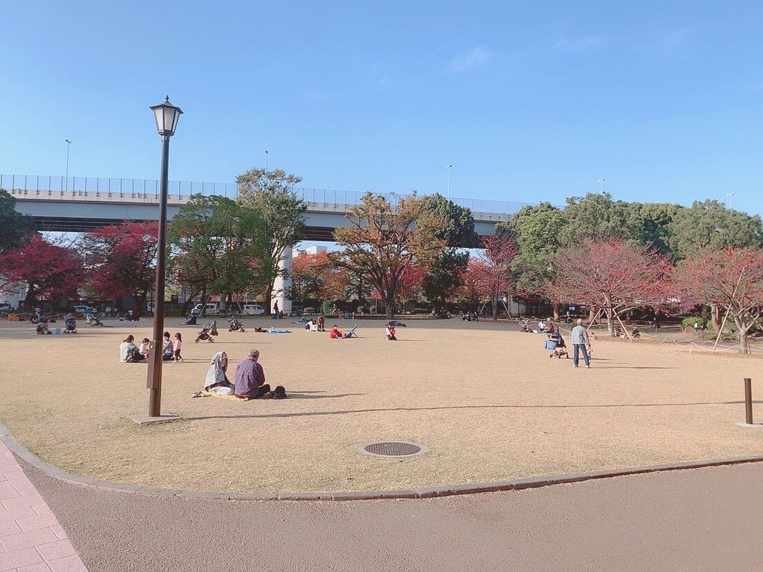 芝生広場には親子連れやひなたぼっこされる方がたくさんいました。