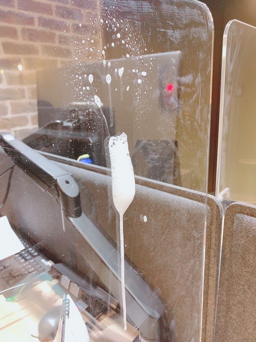 コロナ対策用に、本社でも使用している「飛沫拡散防止アドオンパネル」ですが、指紋や汚れが目立ってしまいますよね