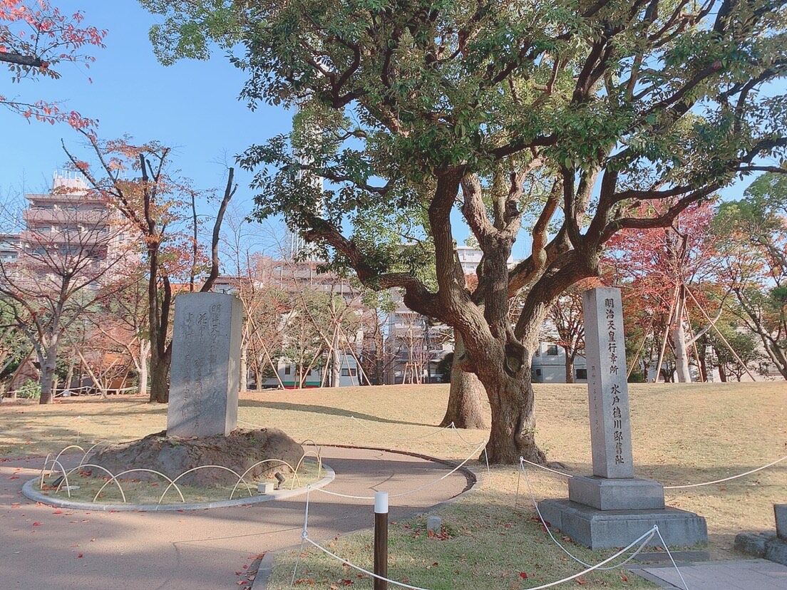 水戸徳川邸石碑や歴史を知れる案内板もあります。