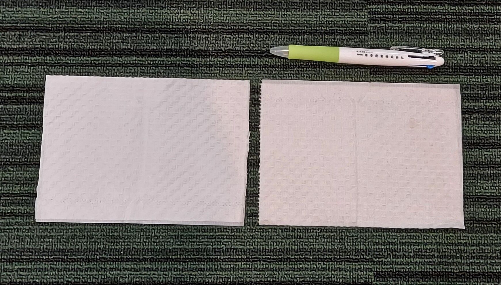 ちょっとした汚れの場合は1枚じゃもったいないし、半分にしてお掃除、