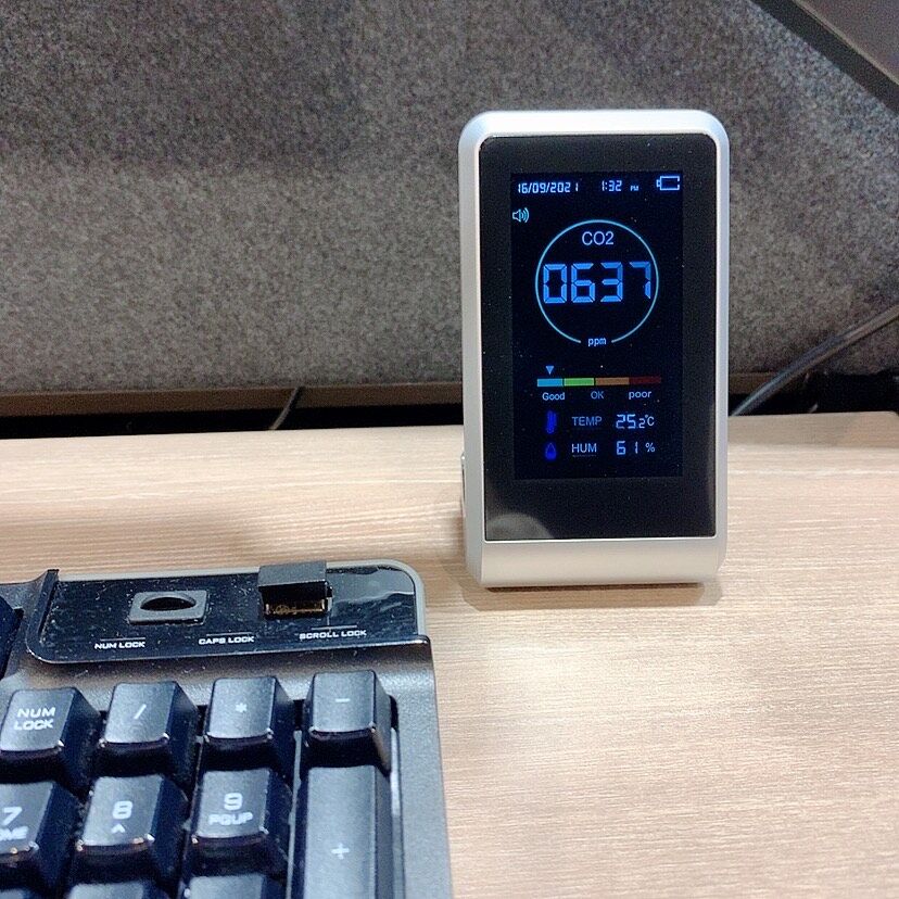 そこで本社オフィスではこの度「二酸化炭素濃度測定器(co2濃度測定器)」を導入しました