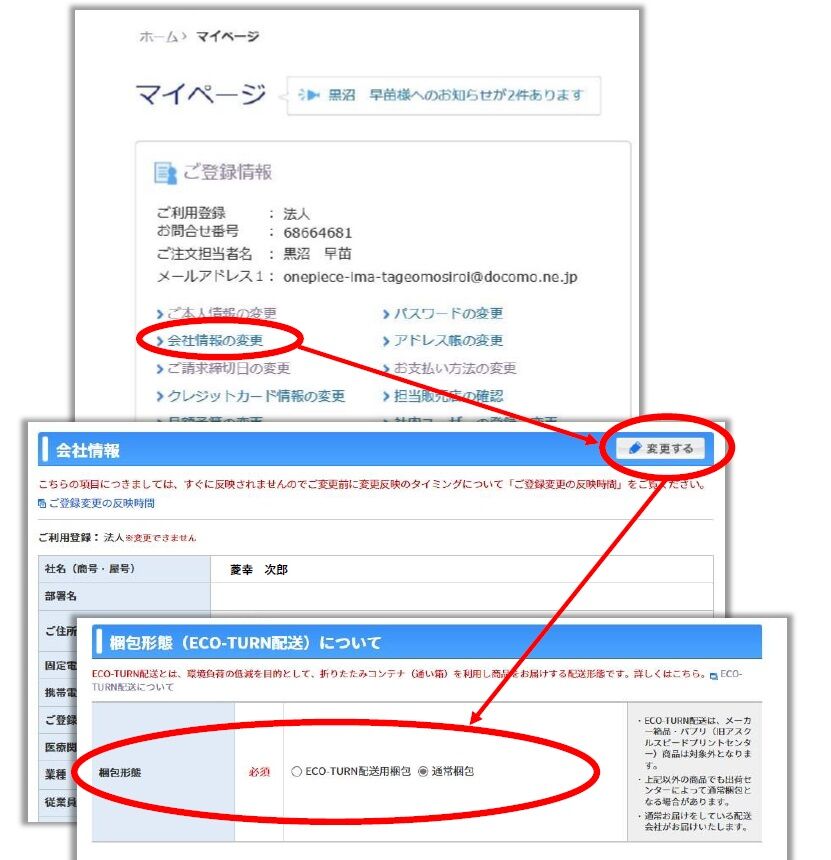 あくまで商品のお届け先を注文の度に変更する機能ですので、