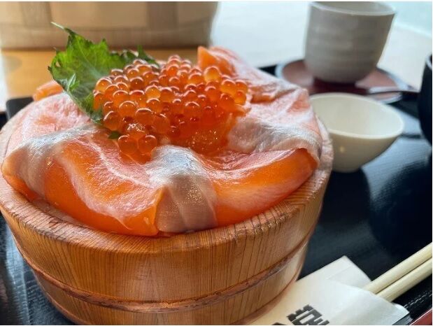 鯵ヶ沢名物『ヒラメのヅケ丼』『イトウ丼』