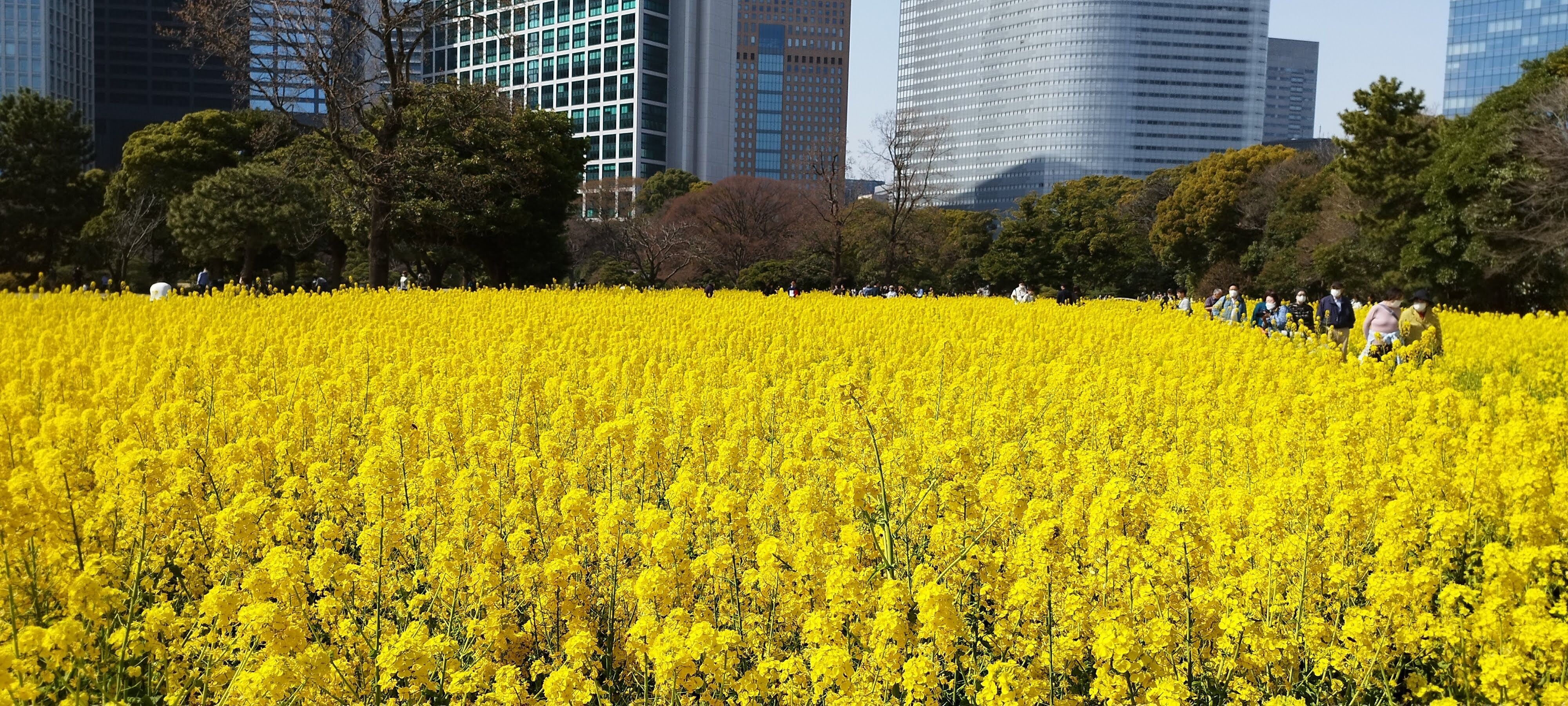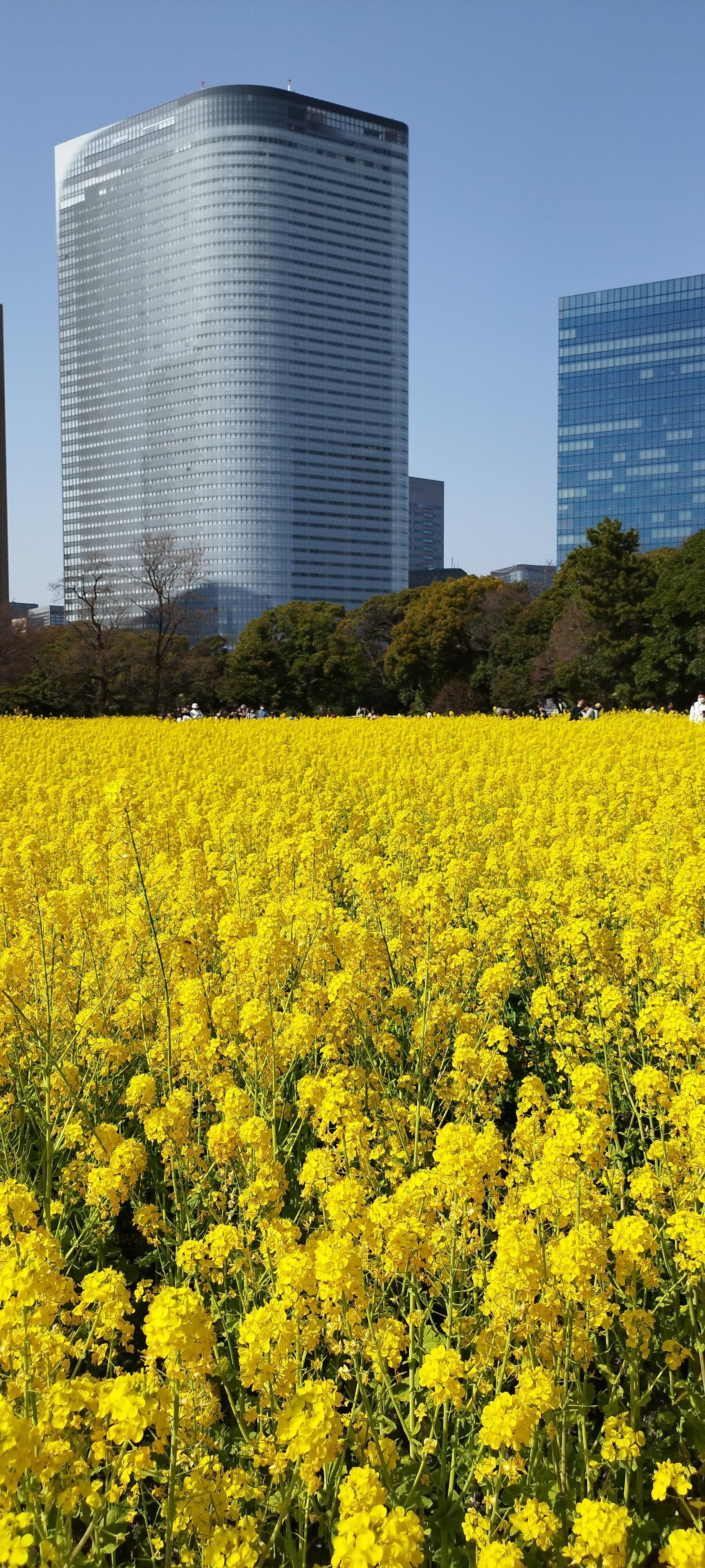 高層ビルと菜の花というコントラスト。東京ならではの景色です!!