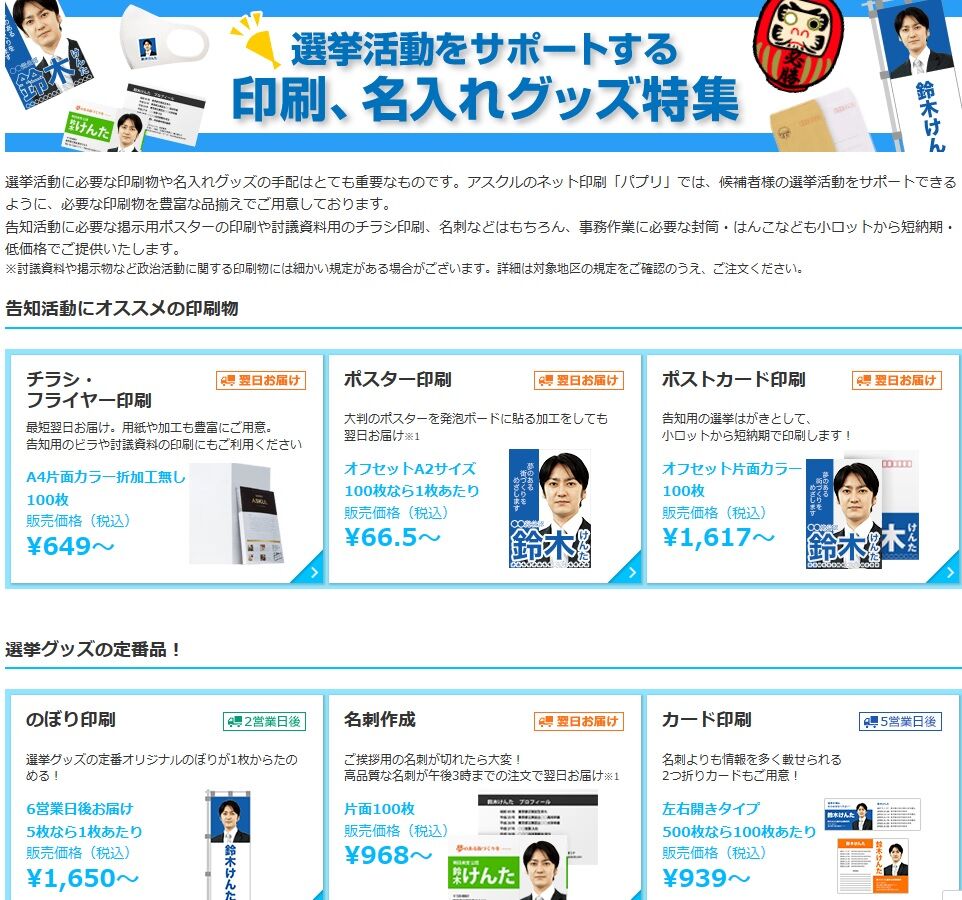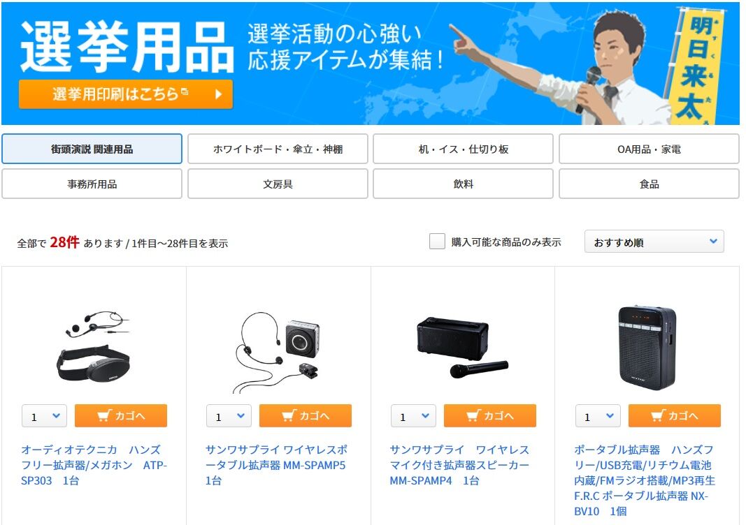 選挙用品のお取り扱いも多彩なアスクルです。