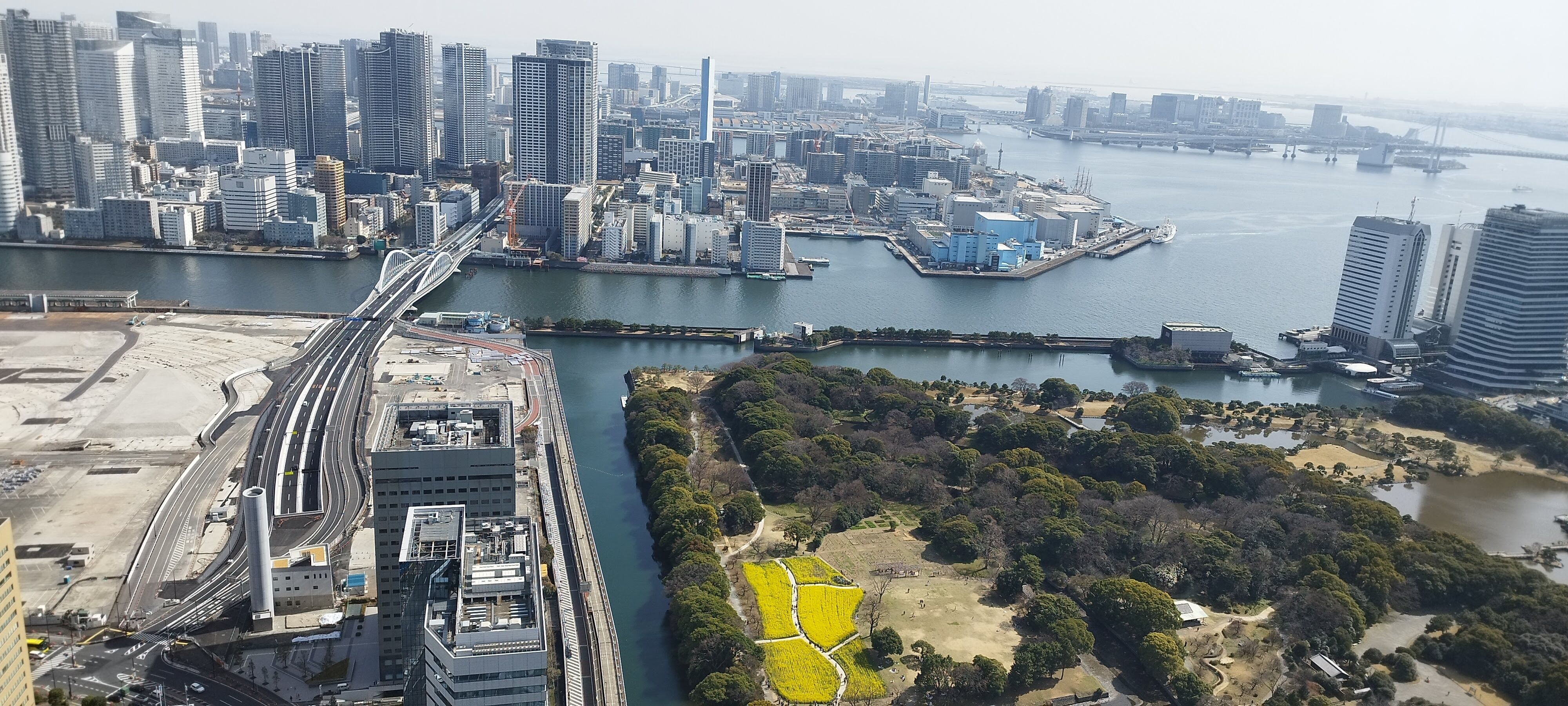 3月の晴れた日に、ちょうど菜の花が見頃の浜離宮恩賜公園に遊びに行きました!!