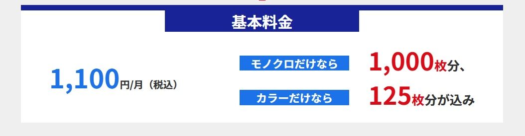 対象プリンターをご購入いただくだけで、毎月のお支払いは基本料金と
