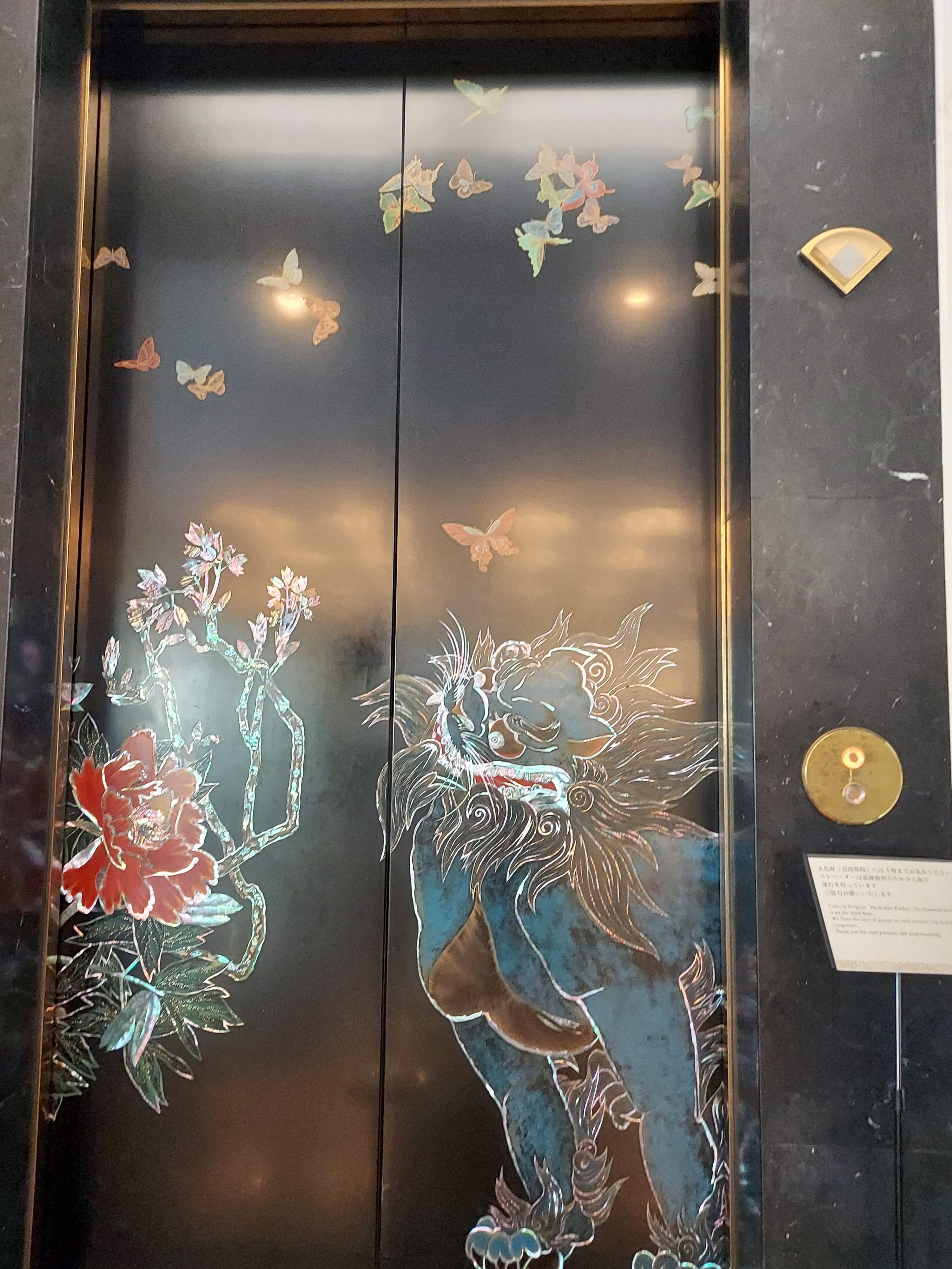 エレベーターも螺鈿で装飾されており素敵ですね