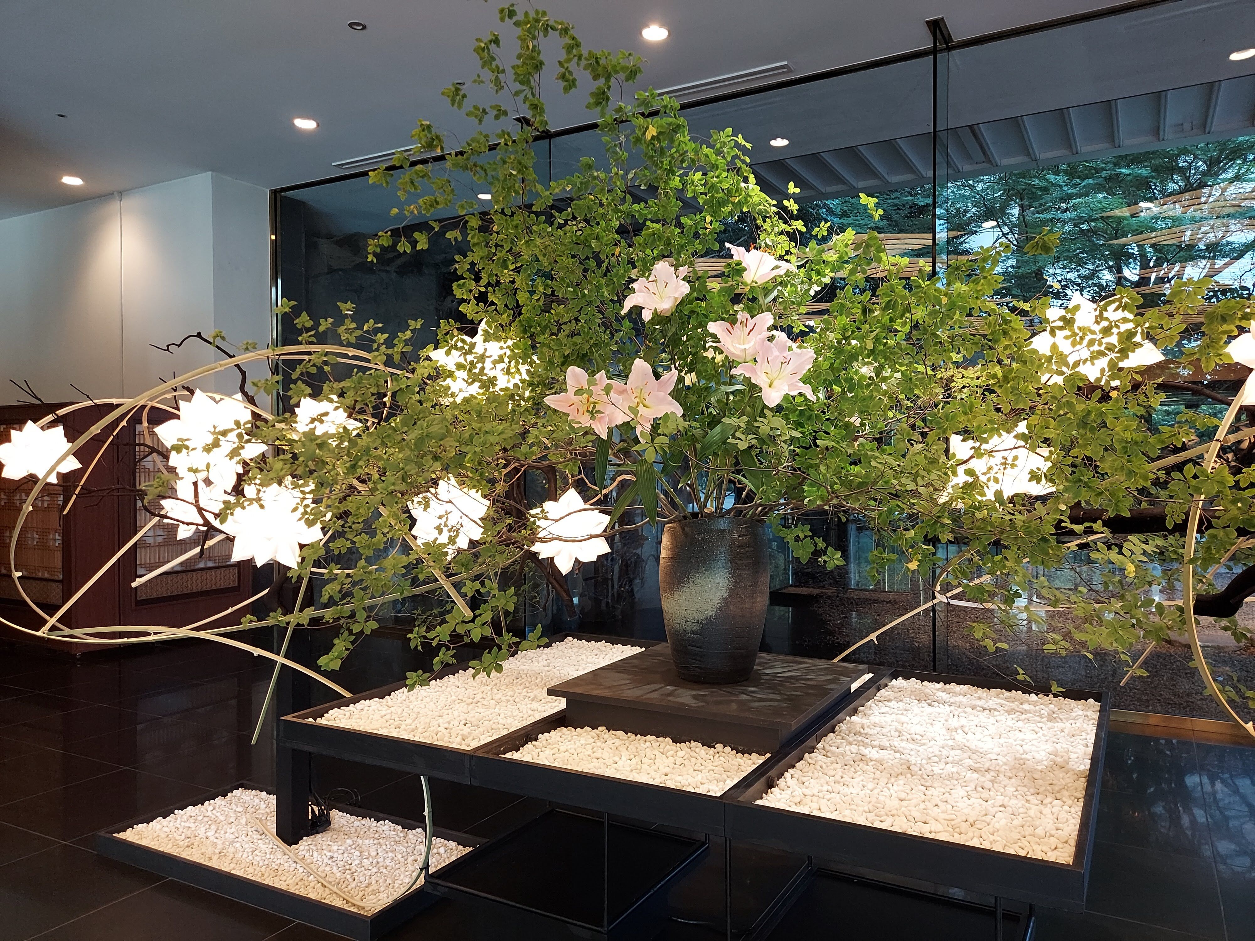 階段の途中途中にあるお部屋は今は客室としては使われておらず、今回のような和のあかりや生け花など様々なイベントに利用されています。