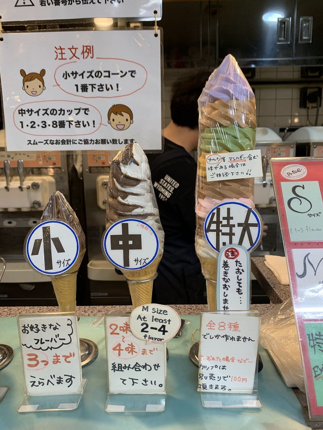 ソフトクリームのサイズは3種類