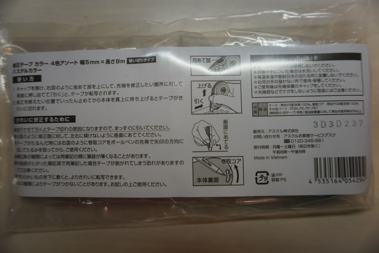 アスクル使ってみたシリーズ 〜アスクル 修正テープ パステルカラー〜