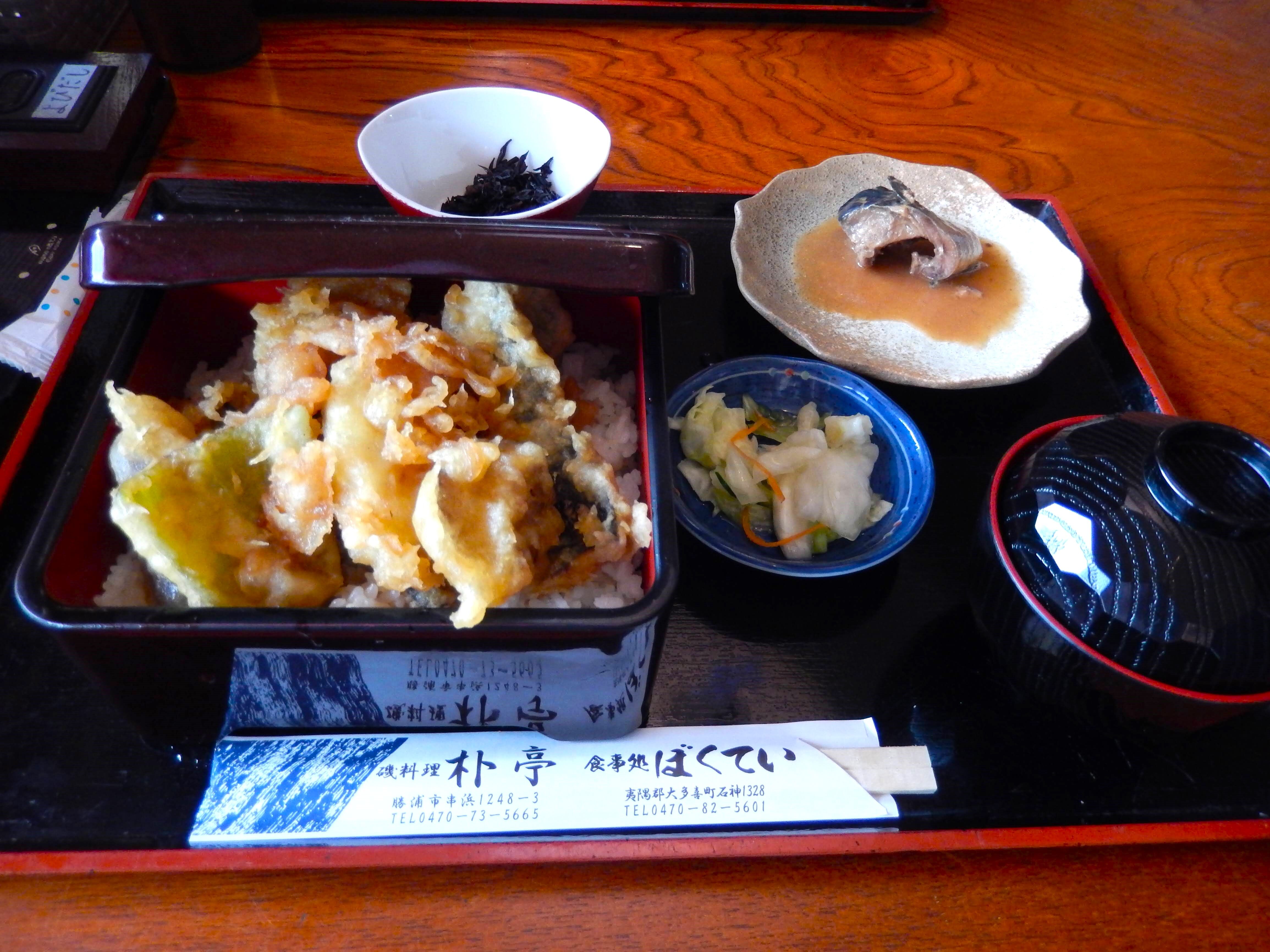 煮魚つきの天重!!イワシの天ぷらおいしかったです