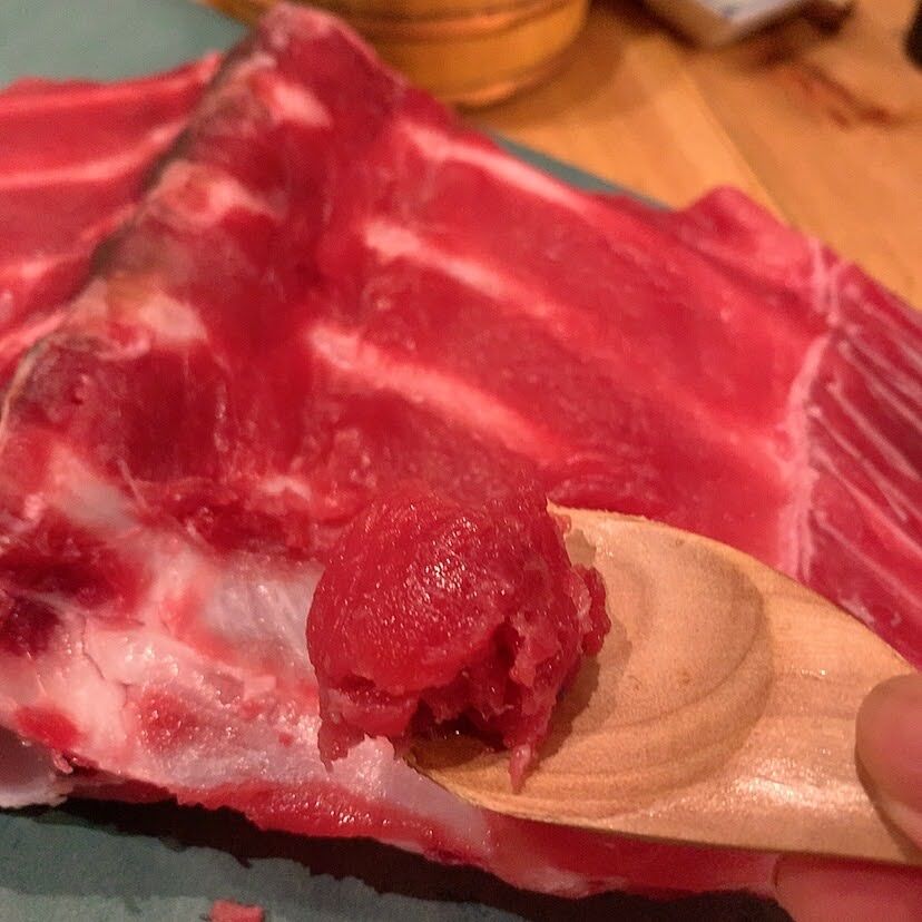 お待ちかねの「マグロの中落ち」は裏表にびっしりと身がついていて、この時点ですでにお腹いっぱいになっていたけれど、これを見るとまた別腹でしたw