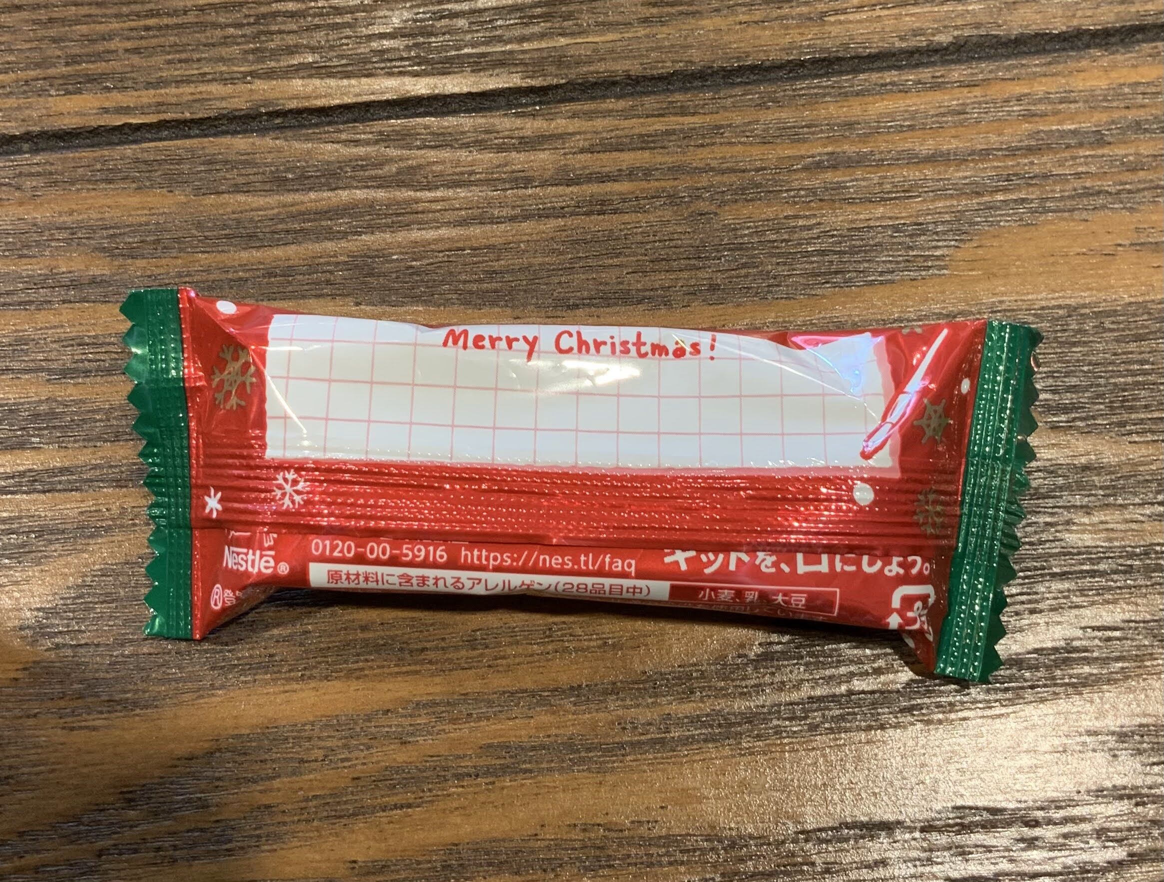 中はいつものウエハース!!サンタさんがしっかり作り込まれている分、チョコレートが多めのキットカットでした