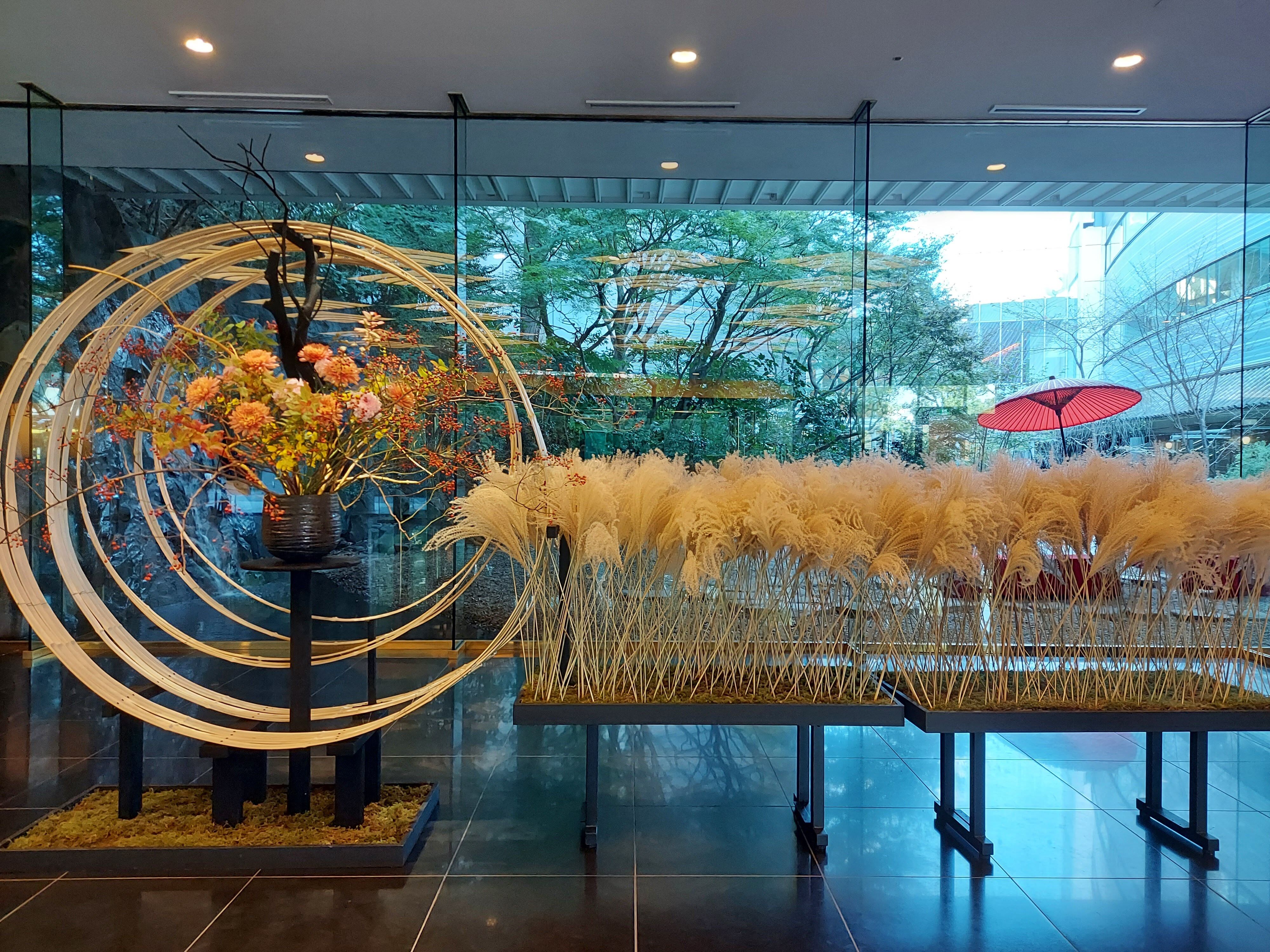 雅叙園の入り口を入ると、月を思わせるフラワーアートがお出迎えしてくれます