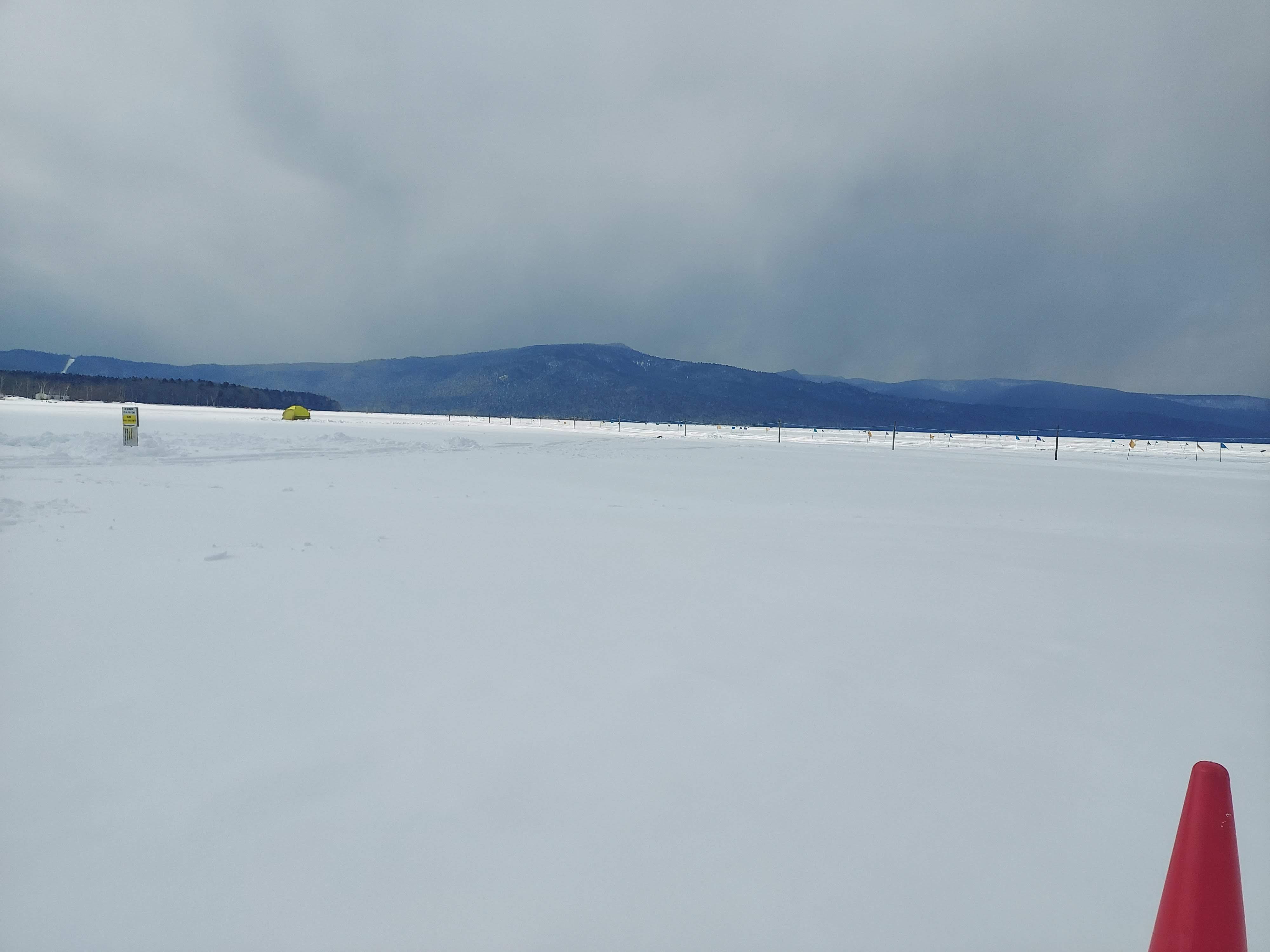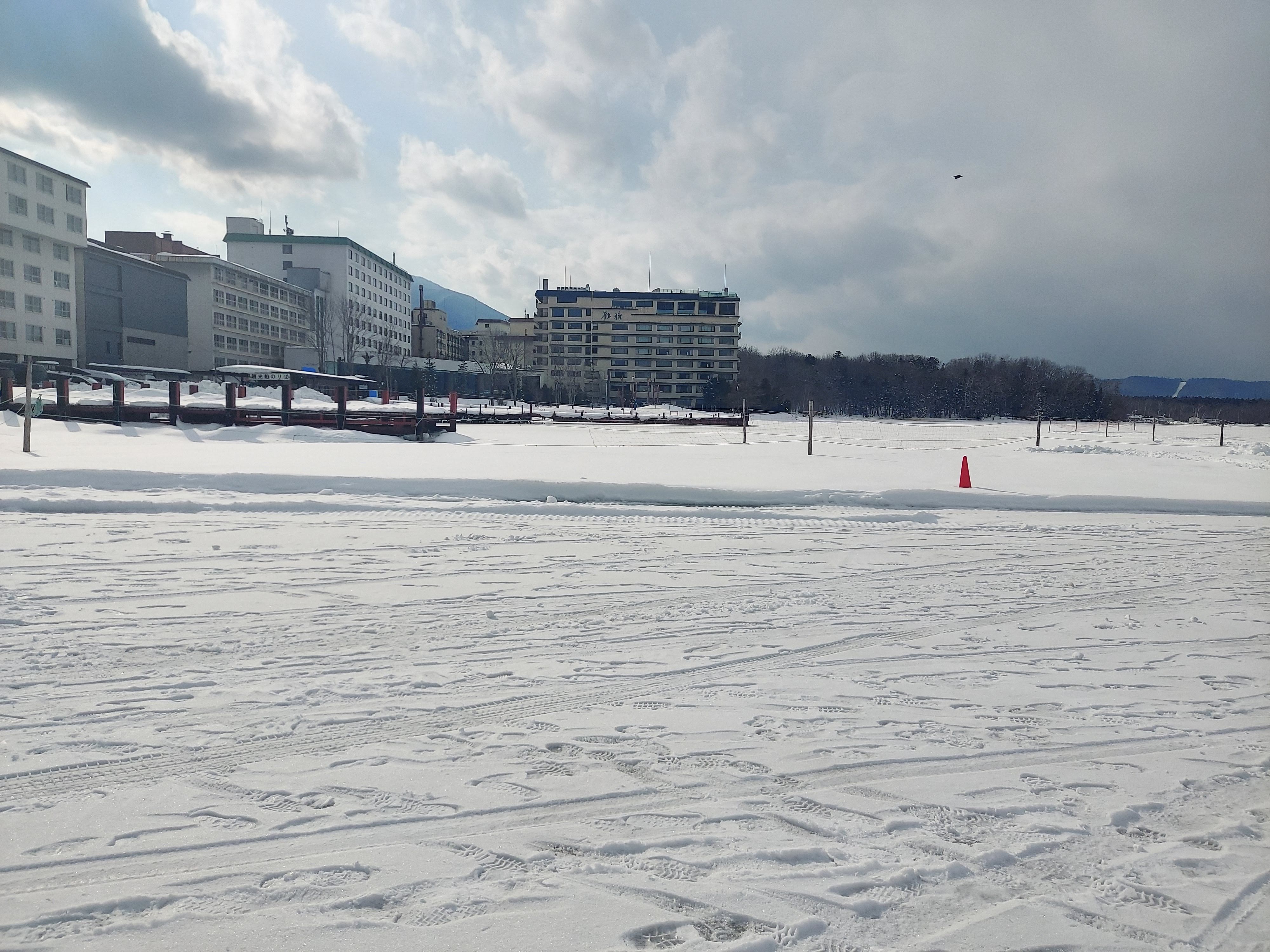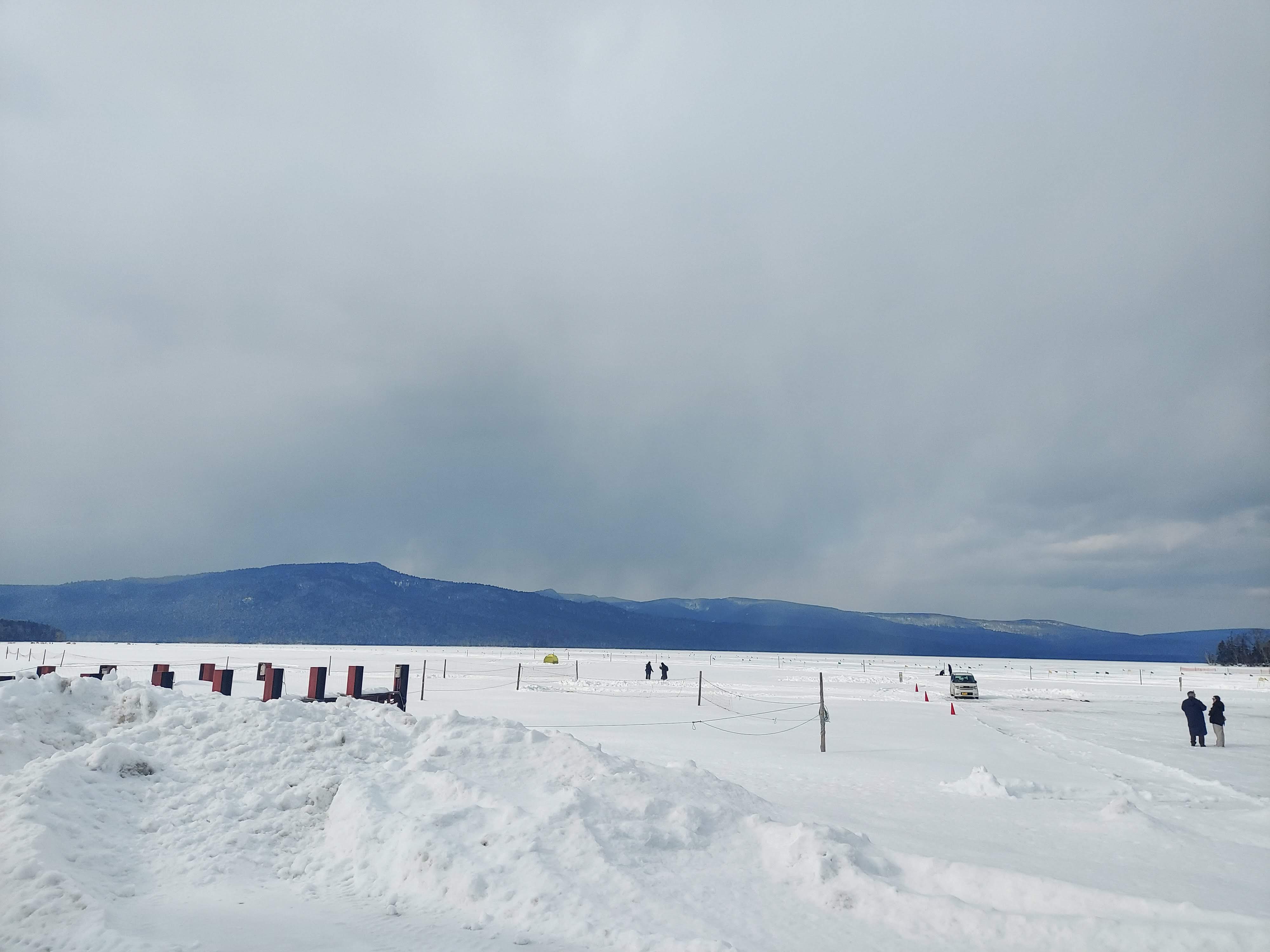 凍っていて、さらに雪が積もっているので普通の雪原に見えますが、ここは湖の上なんですねぇ、ほんとびっくり