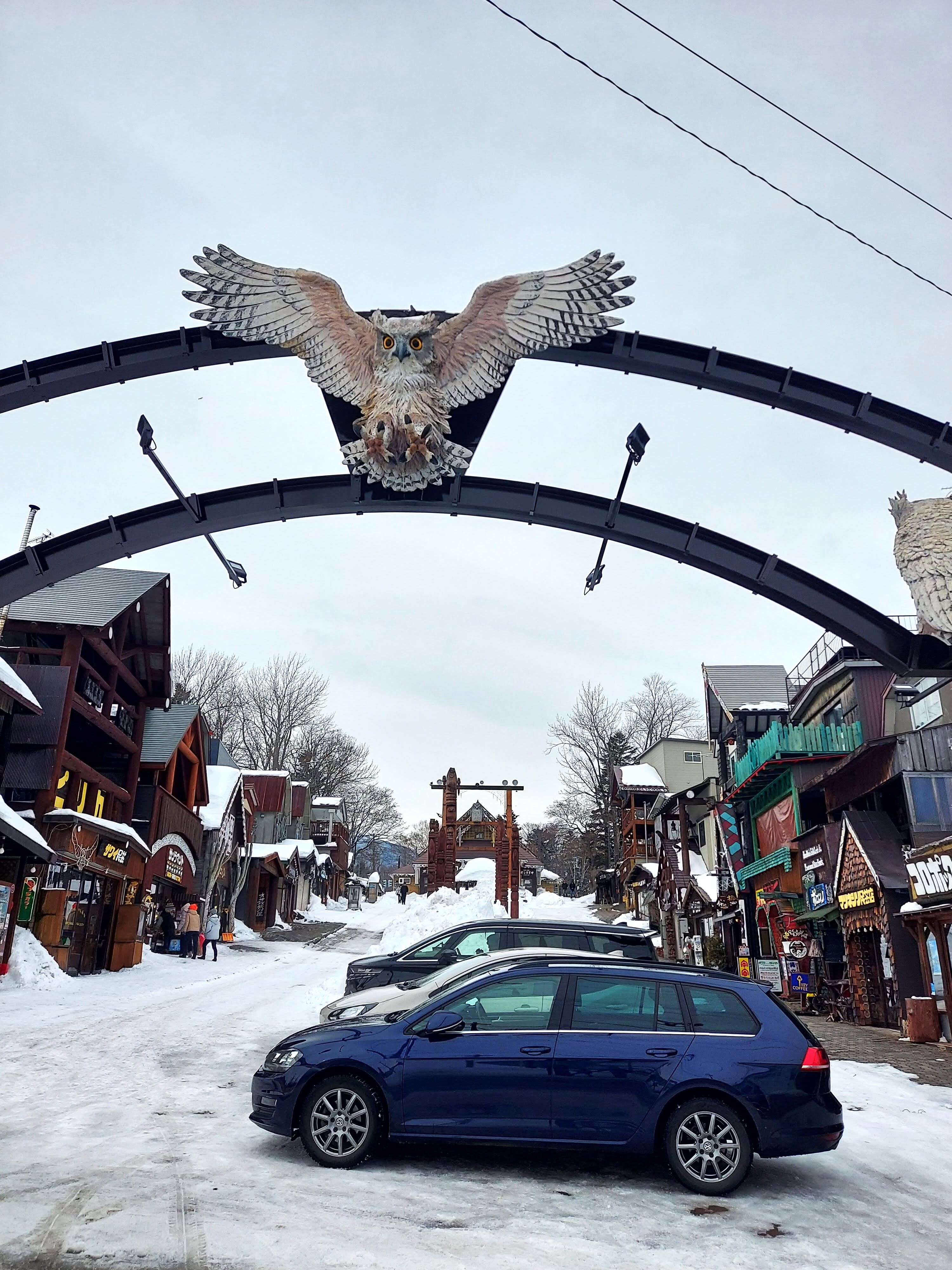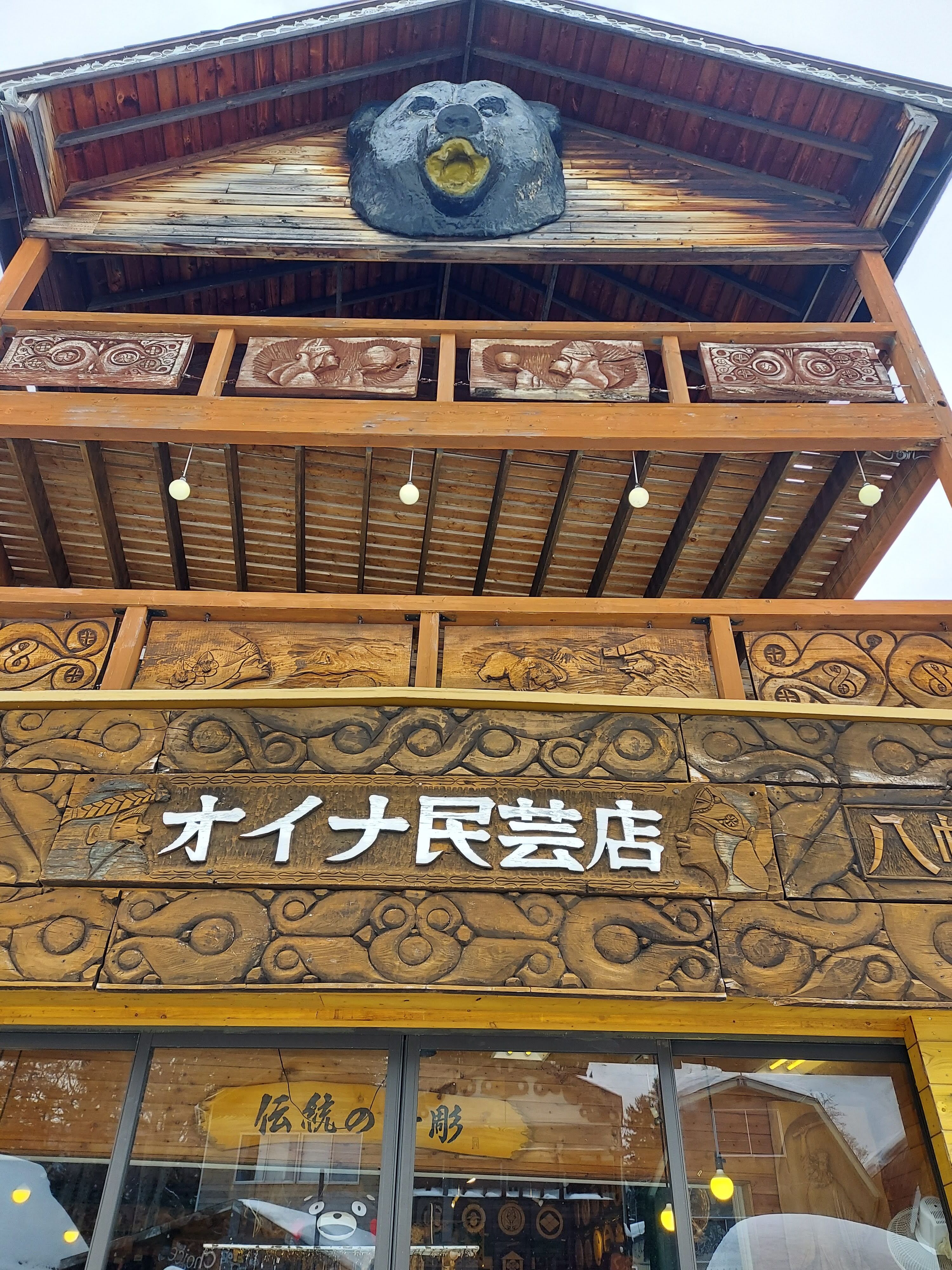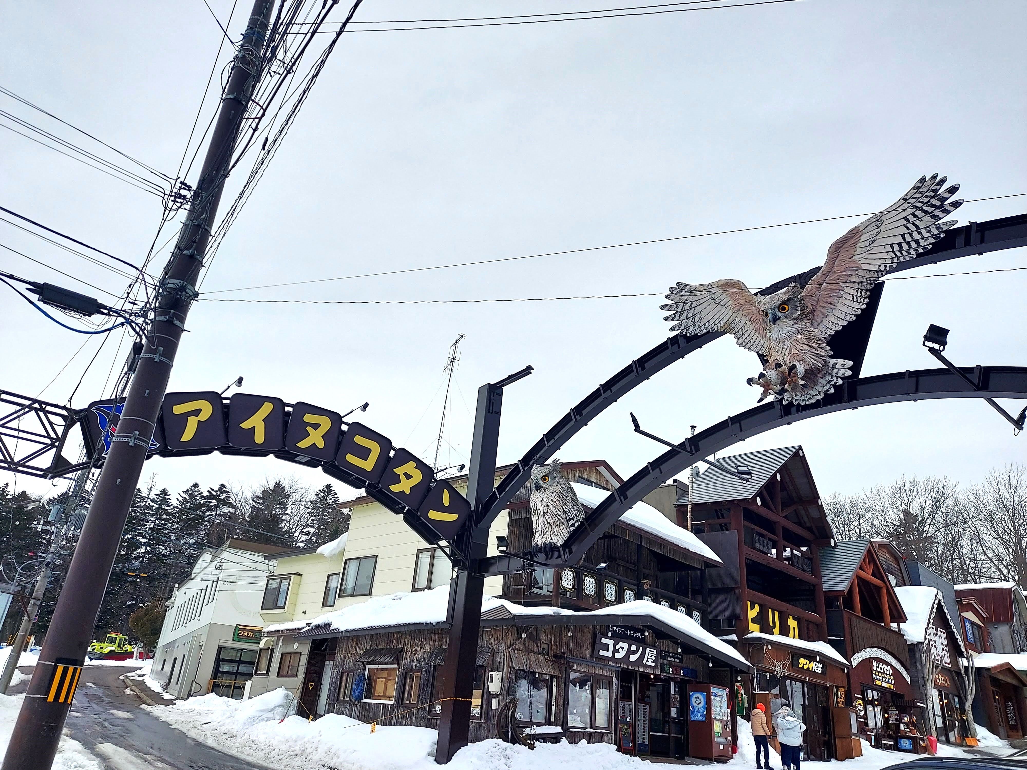 コタンコロカムイがお出迎えしてくれます。両サイドのお店がかわいいですね