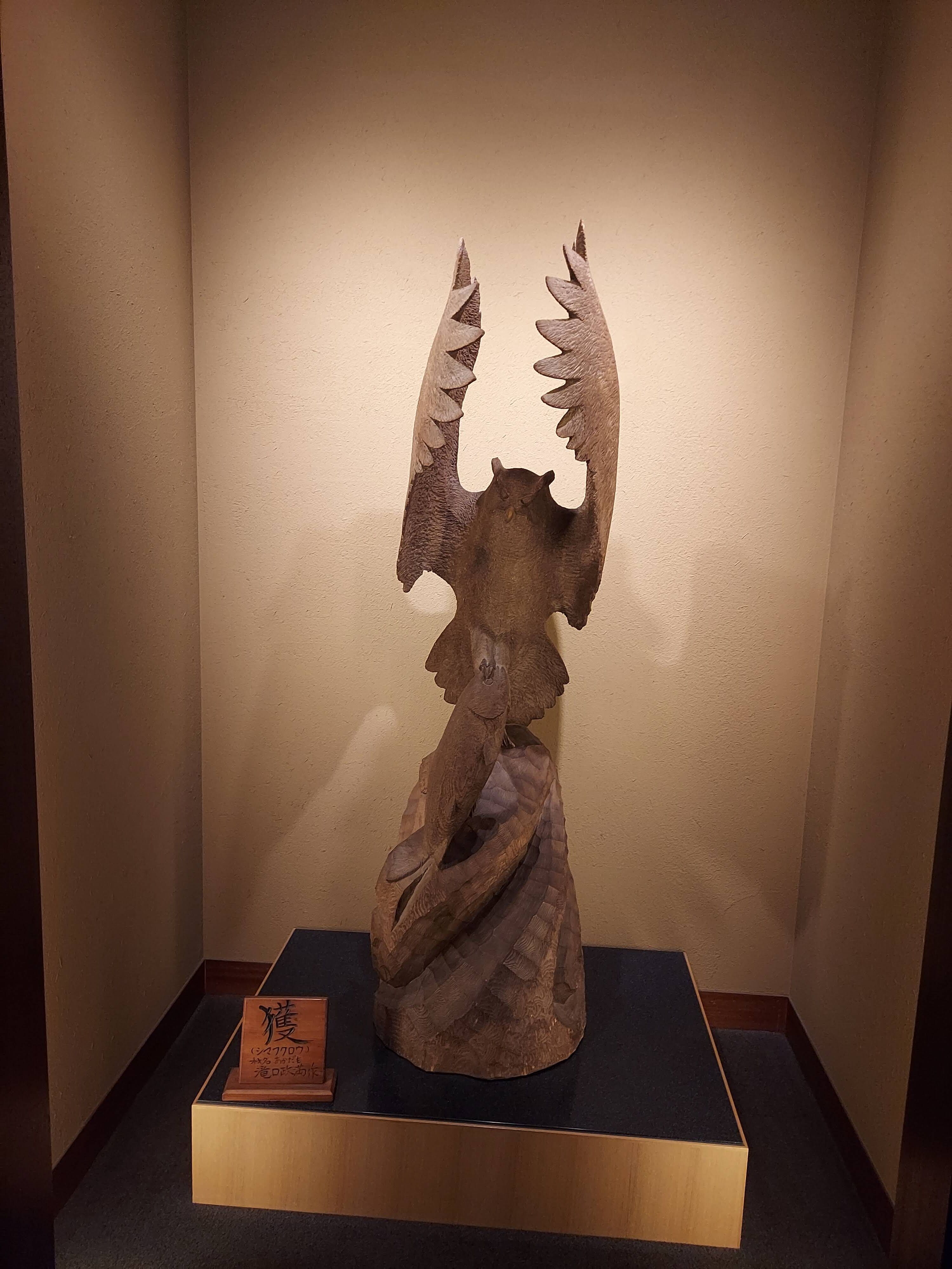 ウイングス館は本館以上に木彫りが飾られていました!!