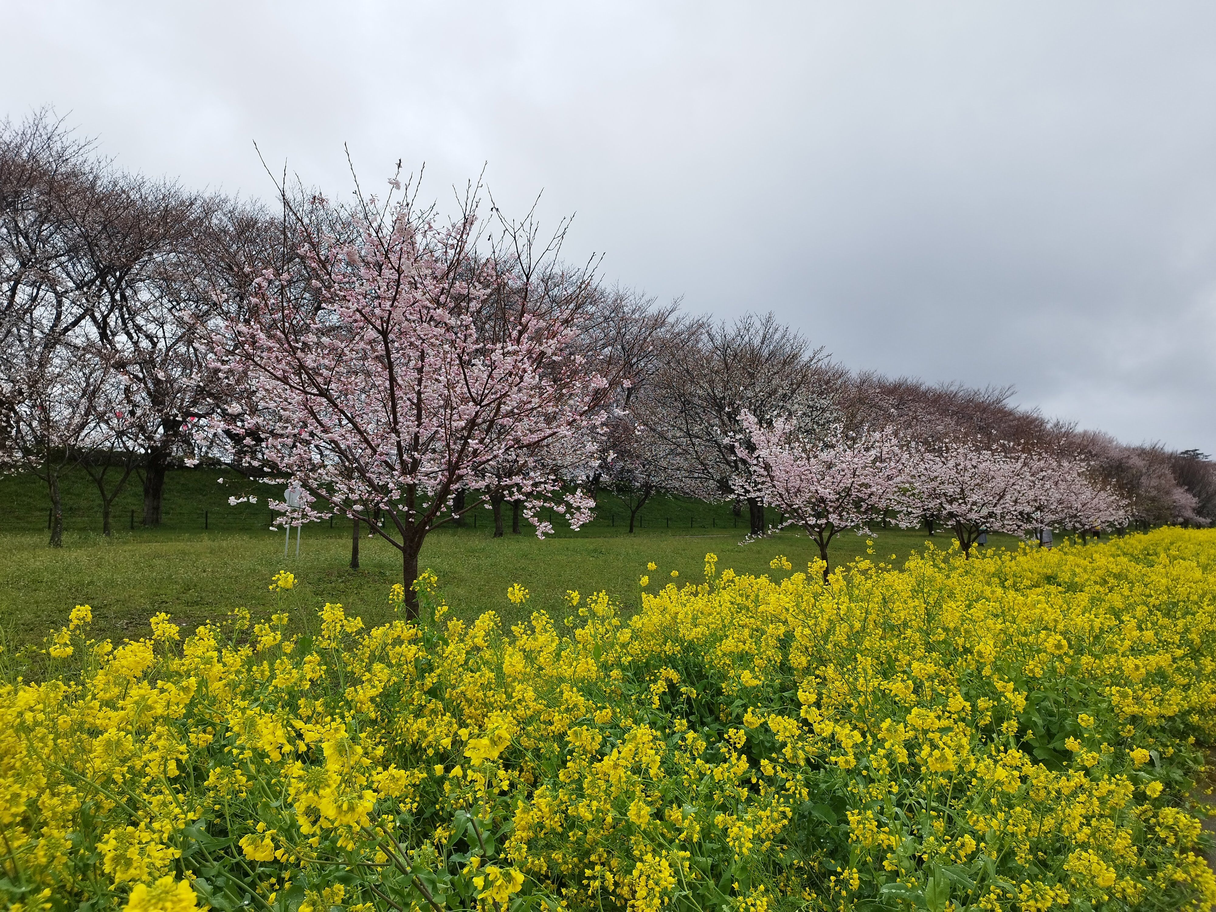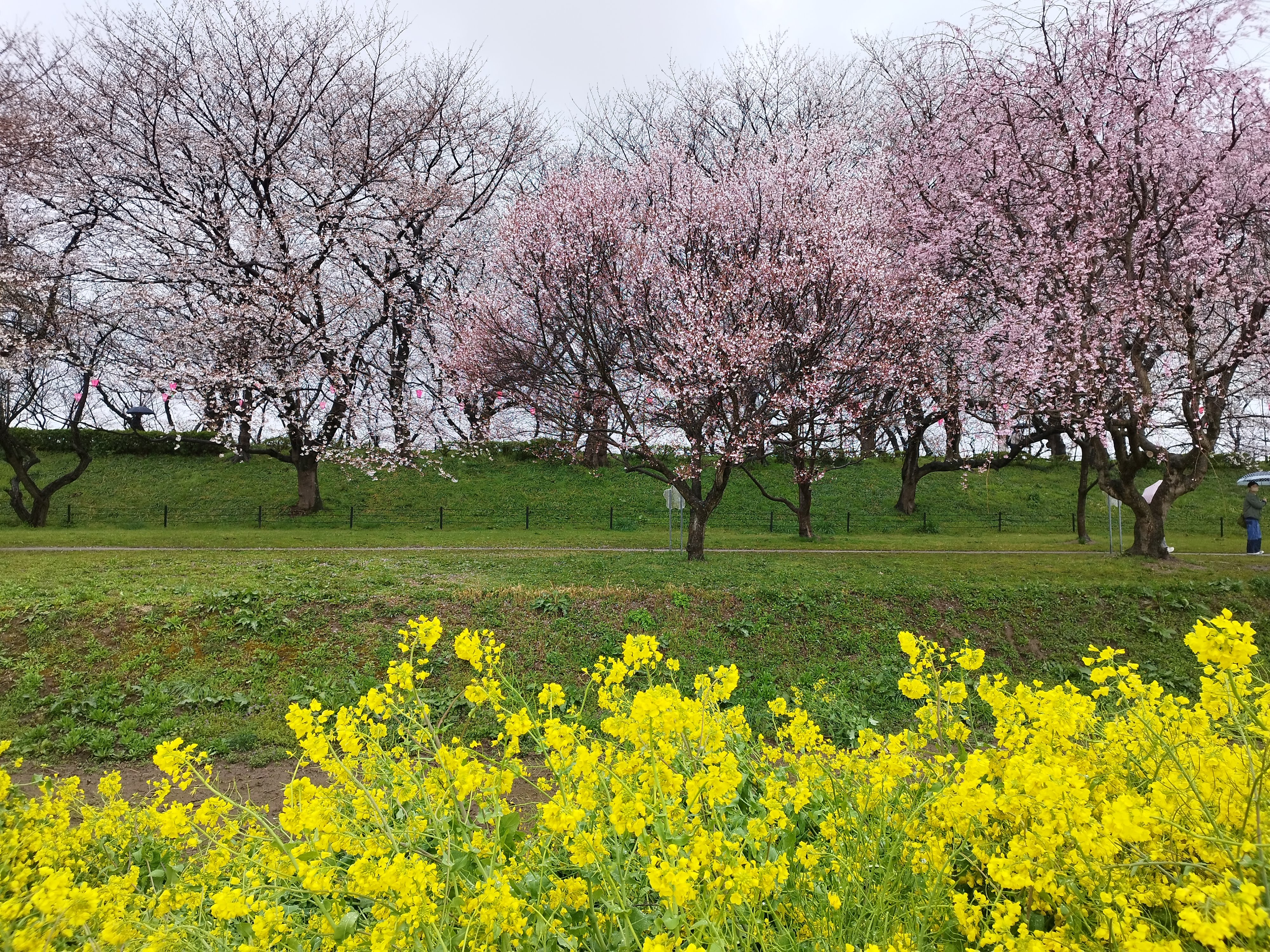 ここは菜の花と桜のコラボが楽しめる場所で有名ですね