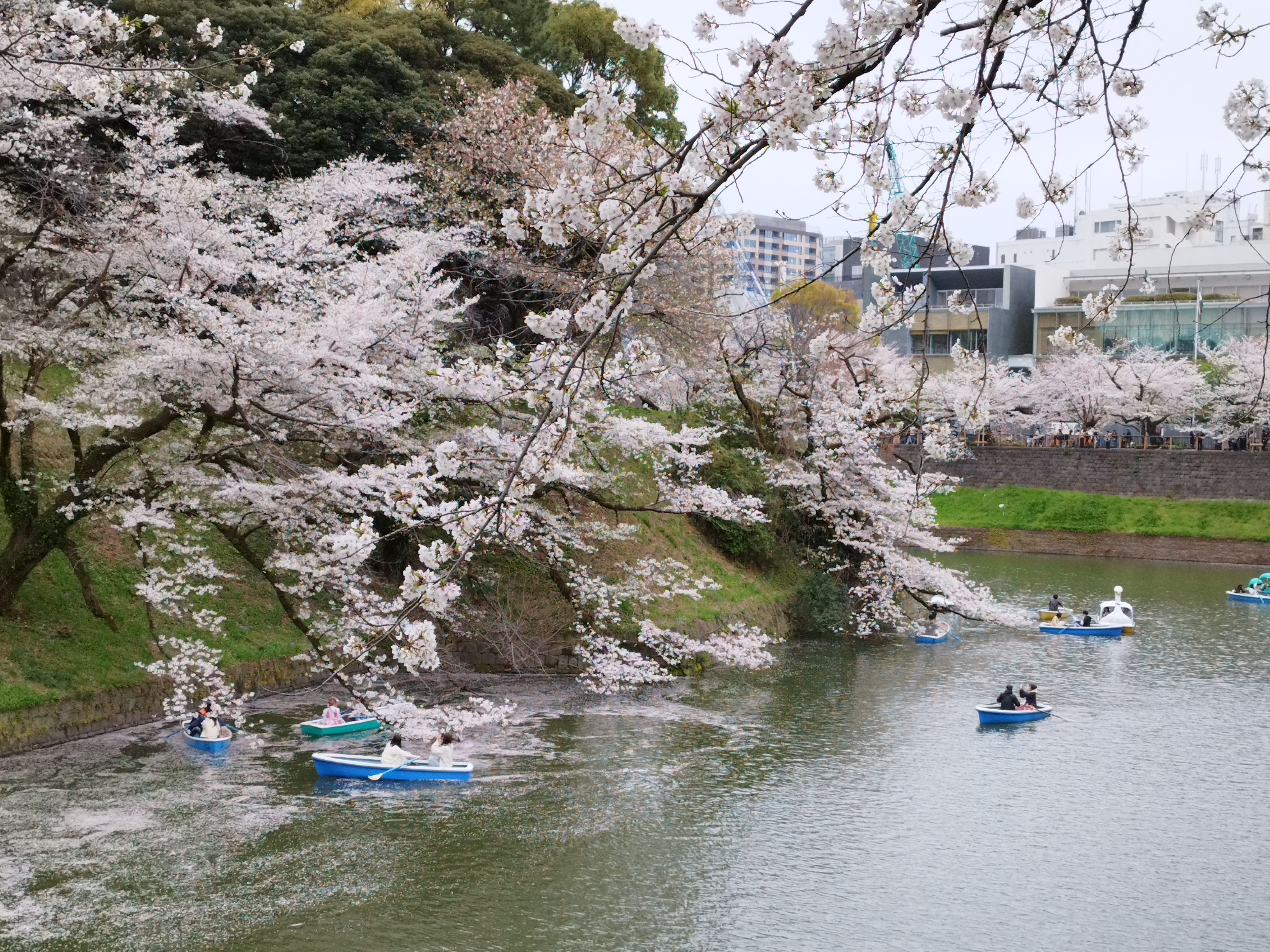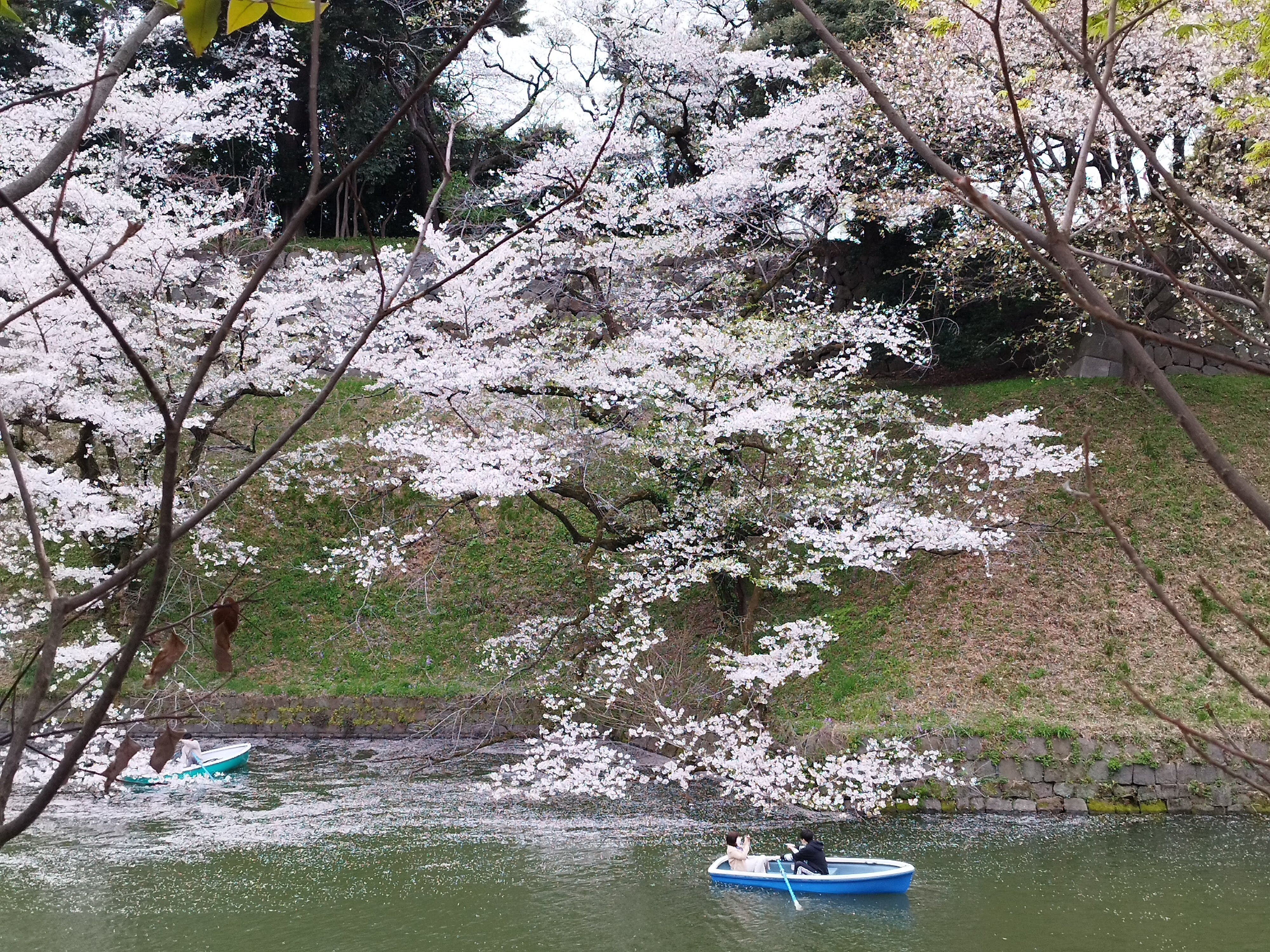 ボートだとお濠の水上から桜を楽しめますね。