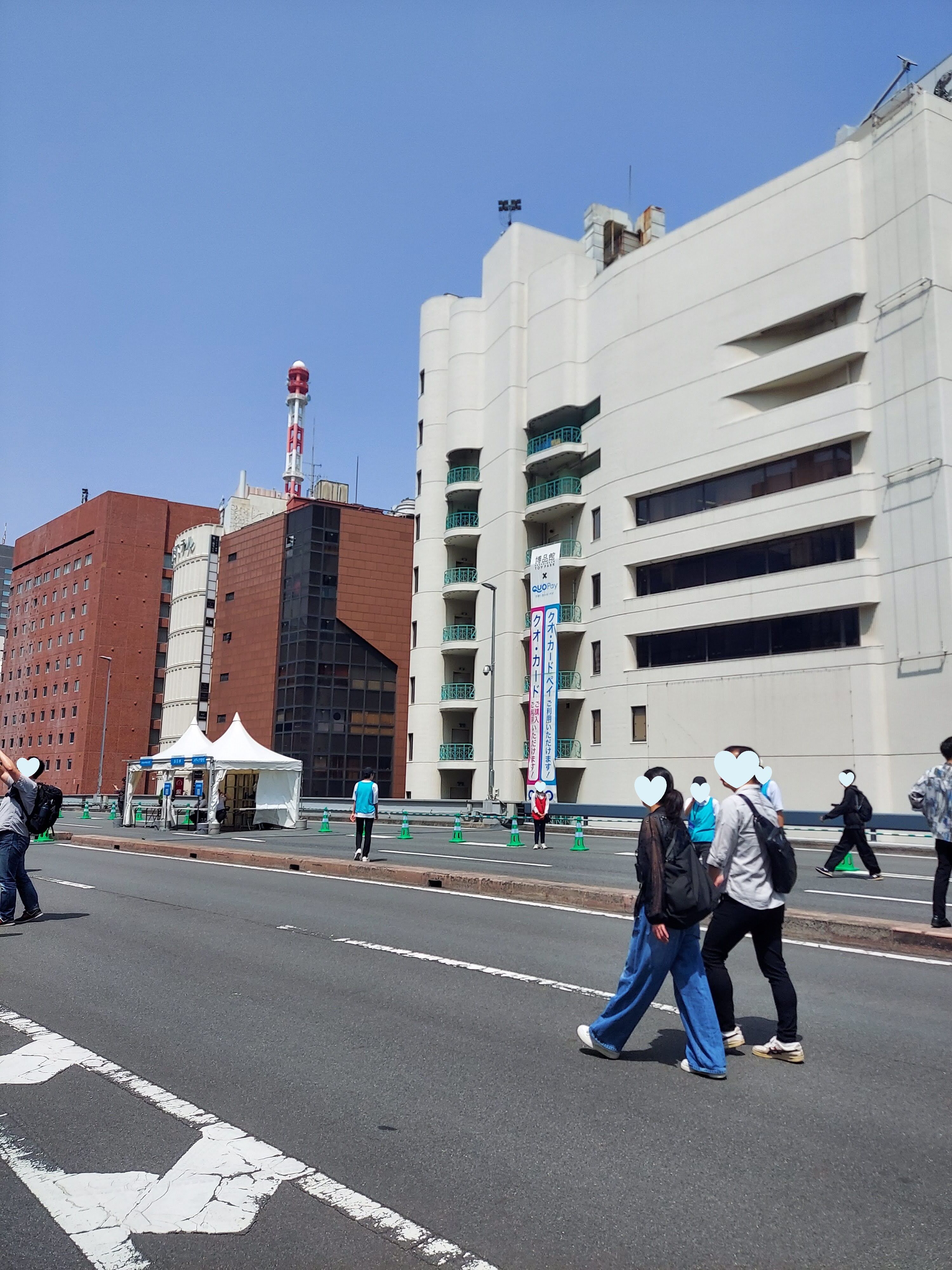 車道、しかも高速道路を歩けるなんてとても開放的な空間で暑さも忘れるほどでした